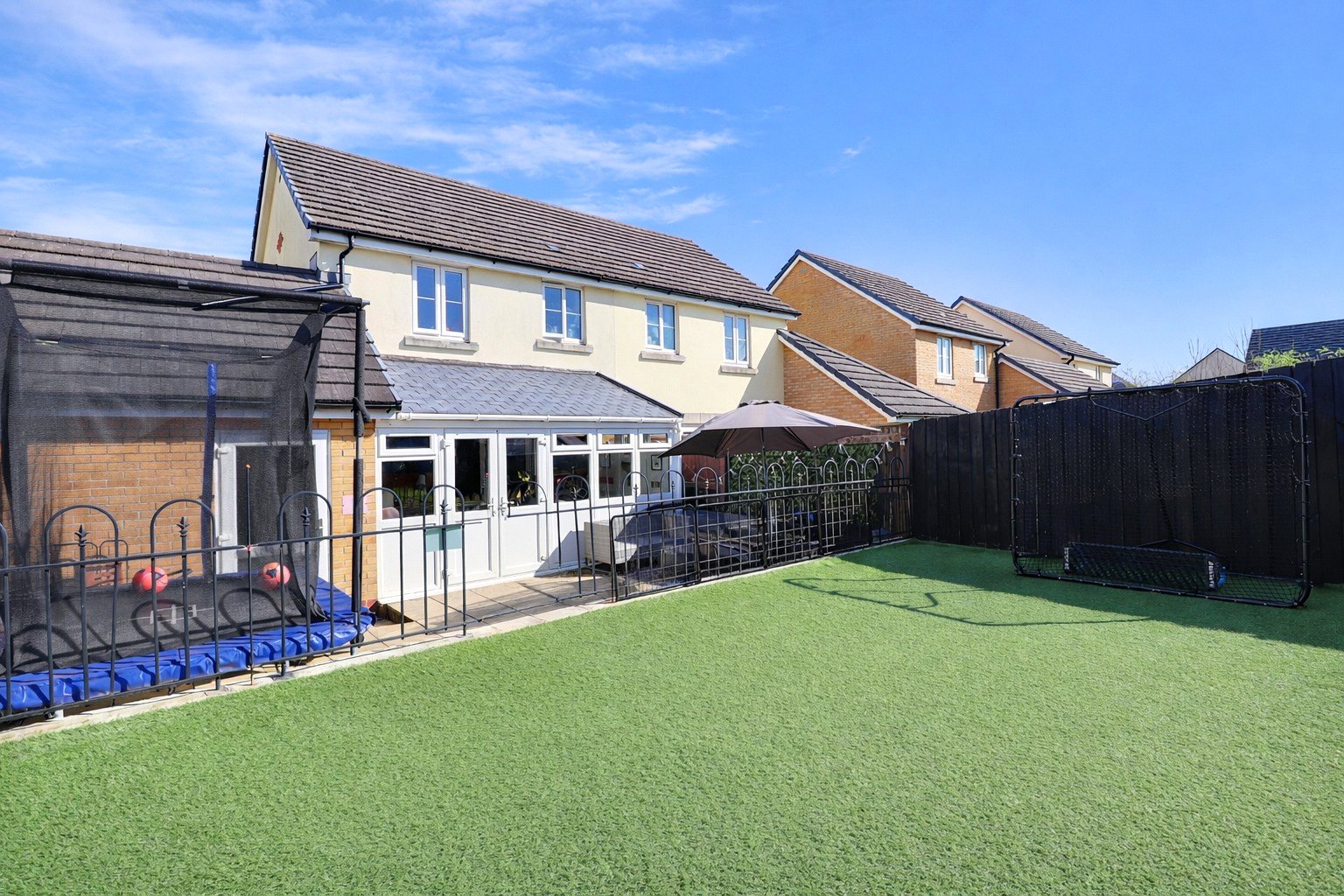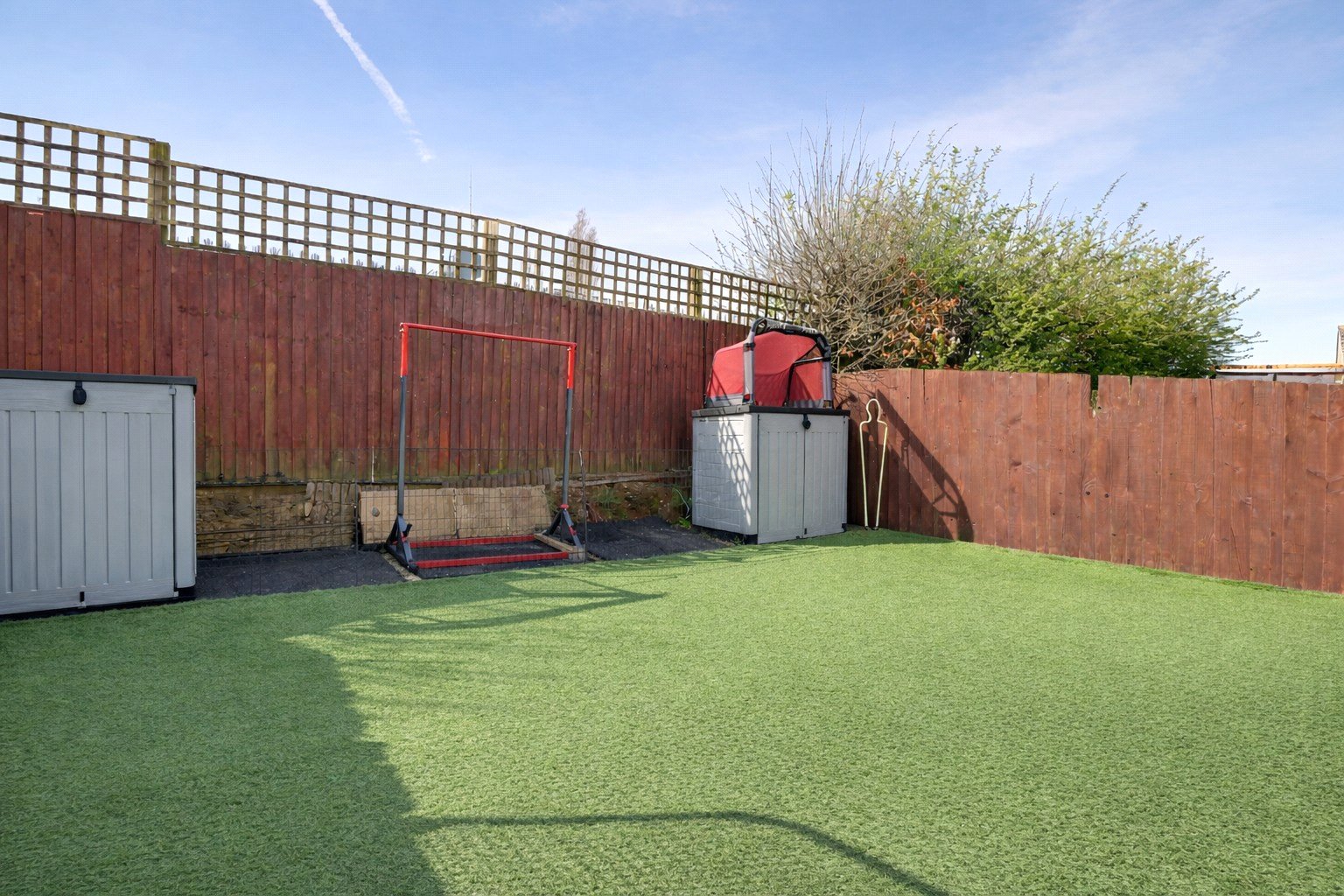 The rear garden is one of the highlights of this wonderful property. Enjoying a delightful south-facing aspect, the garden features a sizeable patio area perfect for outdoor dining or private seating, with steps rising to a low-maintenance section laid to artificial grass.