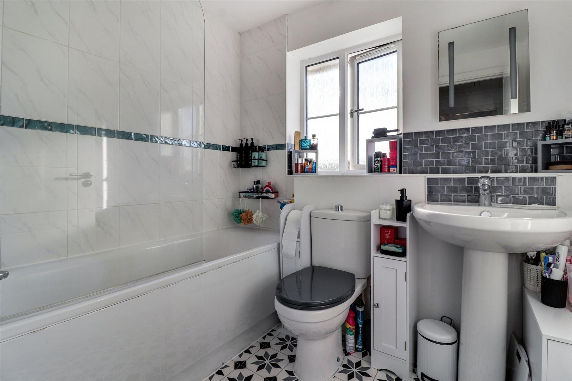 To the first floor, you will find two bedrooms, with bedroom one a good size double and enjoys the added advantage of built-in wardrobes. The family bathroom is fitted with a modern white three-piece suite, including a bath with shower over.