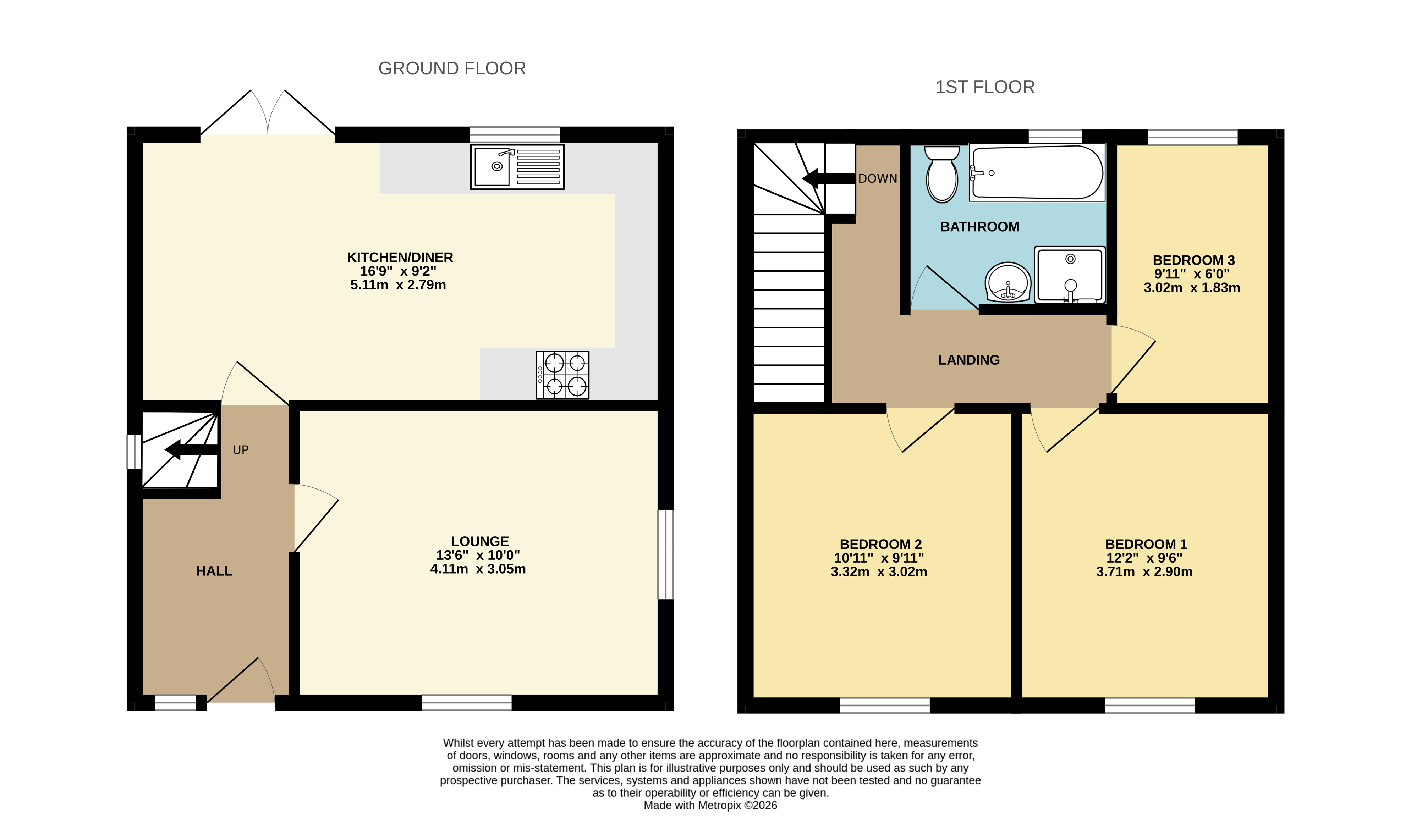 To the rear sits a well-proportioned kitchen/diner with ample worktop space, double oven and room for a dining table and chairs. French doors open directly onto the rear garden, creating a great space for both everyday living and entertaining.