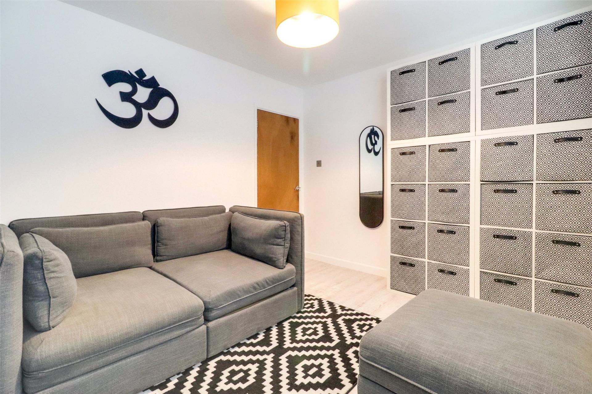 There is a modern, well-equipped kitchen, complete with a range of eye-level and base units, and integrated appliances including an electric oven, hob, dishwasher, and fridge / freezer. Continuing through the kitchen, a doorway opens into a spacious lounge, providing plenty of room for sizeable furniture. A front-facing window floods this room with natural light, creating a bright and inviting atmosphere.e.