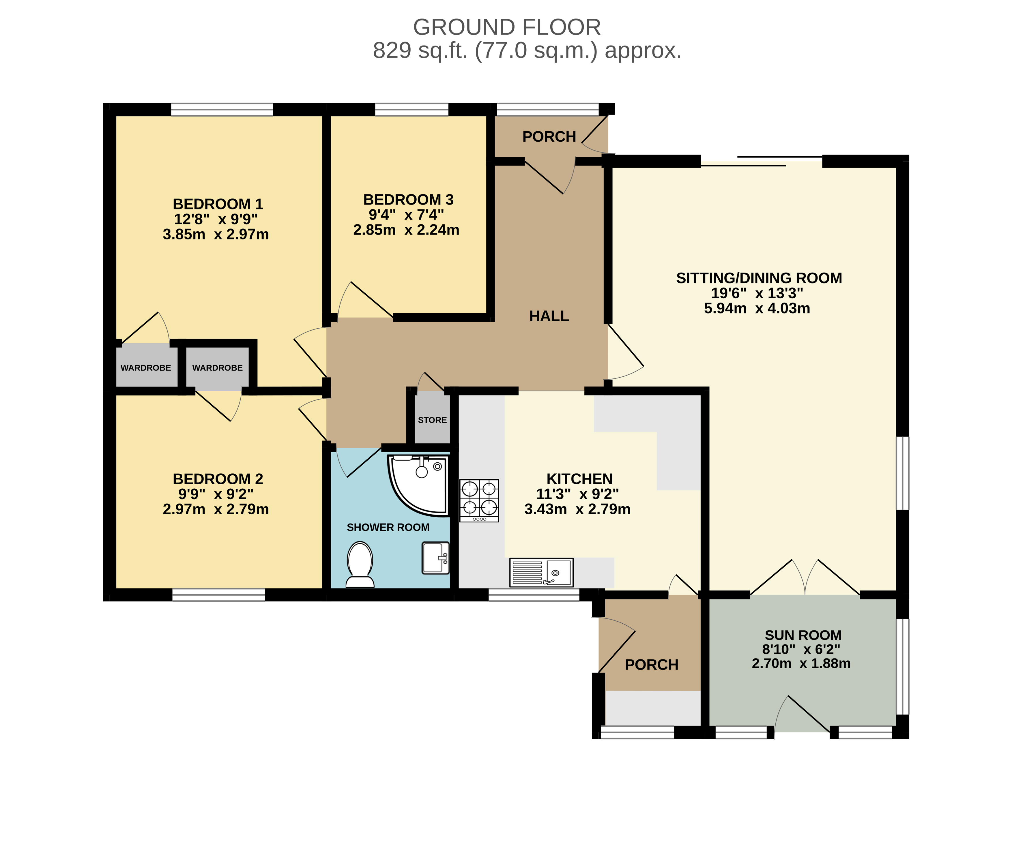 Bedrooms one and two feature fitted wardrobes, adding practical storage while maintaining a versatile layout. All three bedrooms offer flexible accommodation, ideal for guests, hobbies, or home working, and the shower room has been finished in a modern style to ensure comfortable daily living.