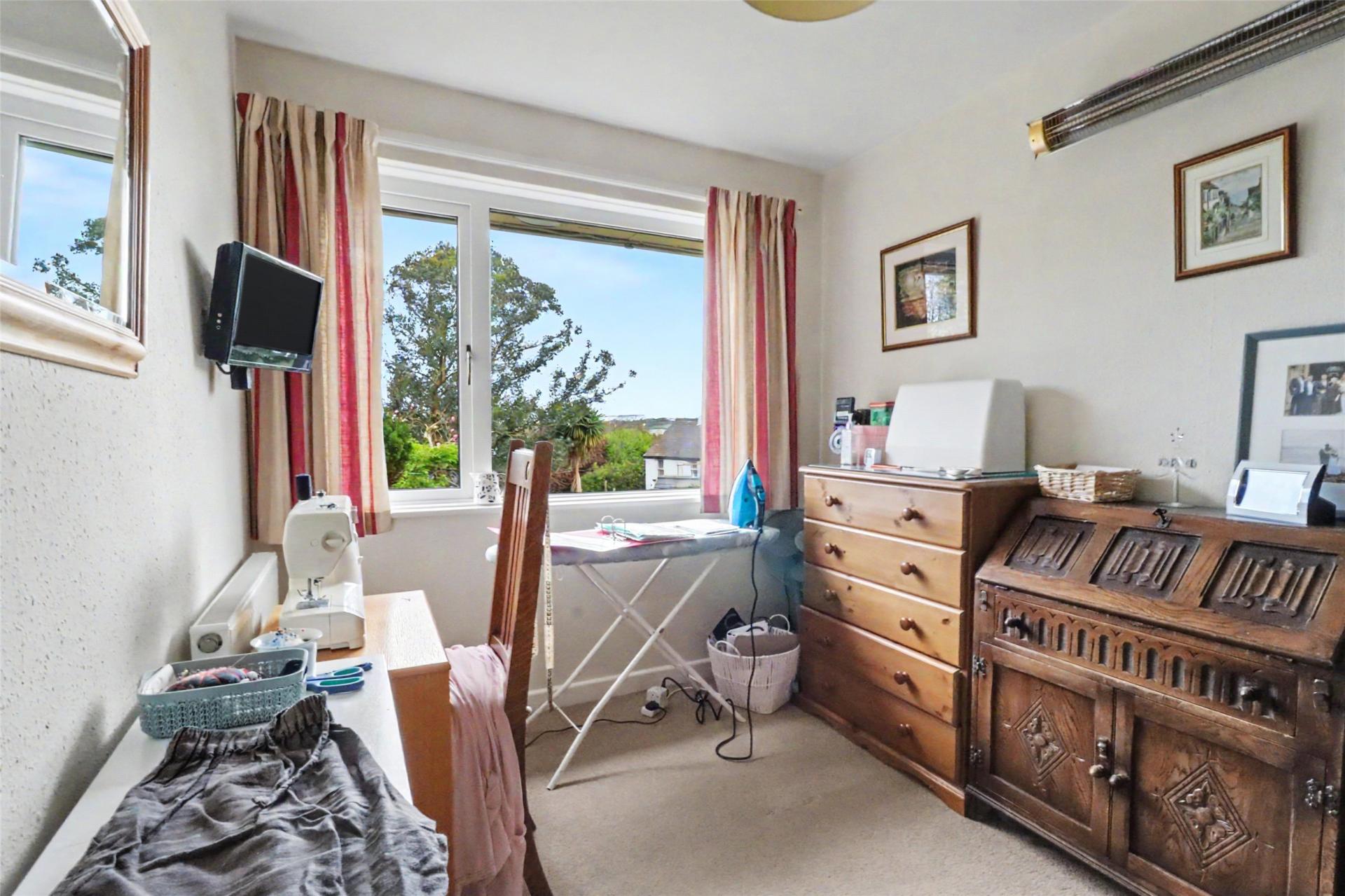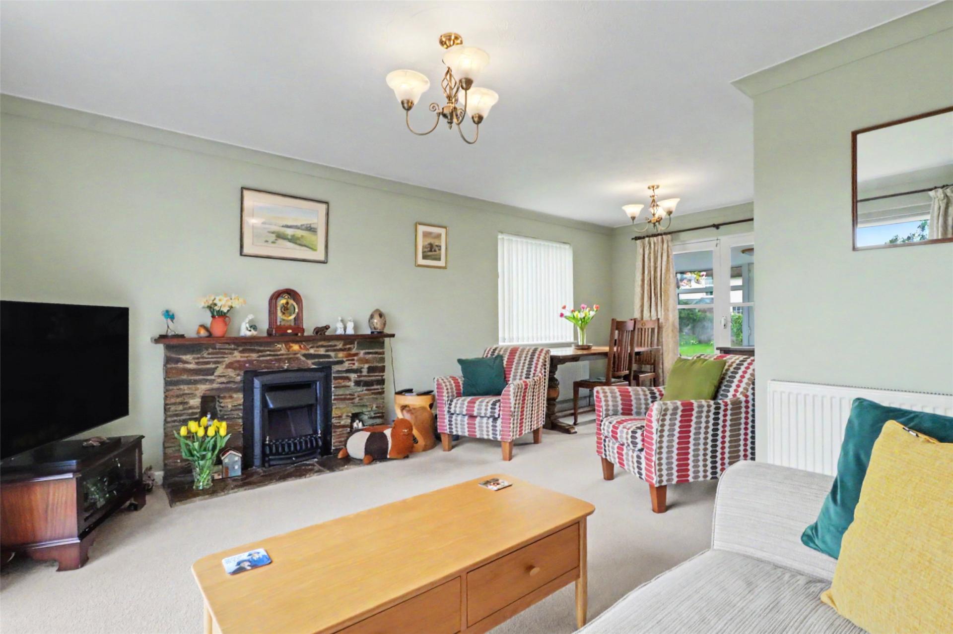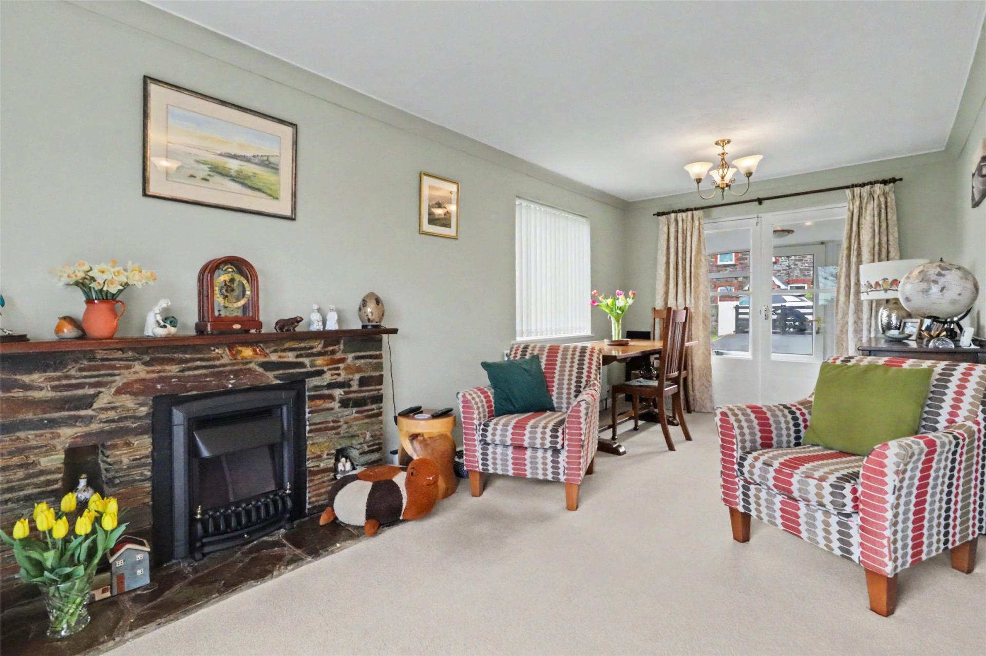 Inside, the accommodation is thoughtfully arranged for easy single-level living, offering a layout that is both comfortable and low-maintenance. The open-plan sitting and dining room serves as the principal living space, creating a welcoming and sociable hub that is equally suited to relaxed evenings at home or entertaining visiting family and friends. Adjoining the dining area, a bright sunroom overlooks the front of the property and provides additional seating space, lending itself to a variety of flexible uses.