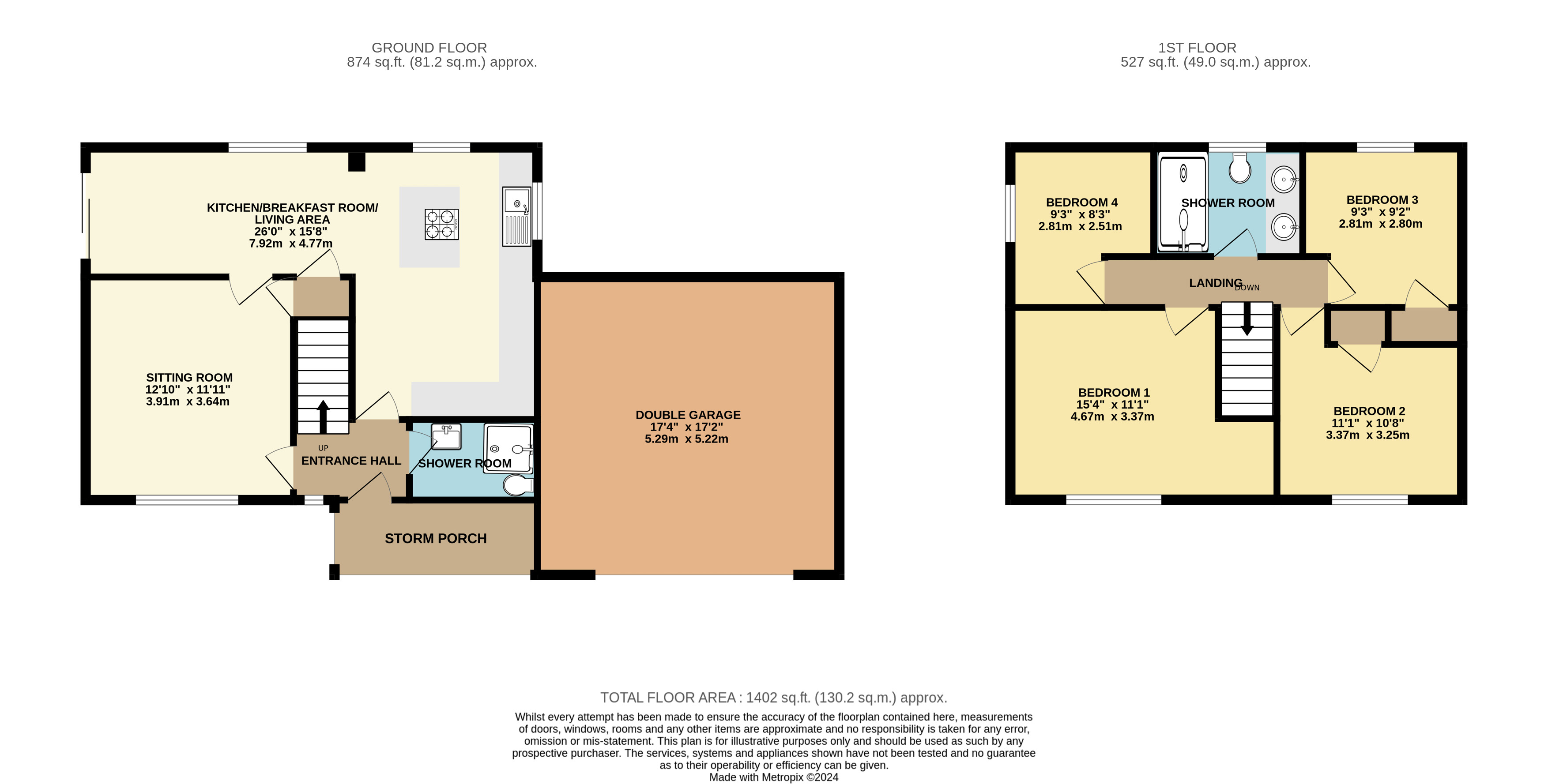 Continuing outside and to the front of the property is the double garage, off road parking for two vehicles and well manicured lawn garden. The property is accessed via a private drive with the neighbouring property which has a shared right of way onto their own driveway.