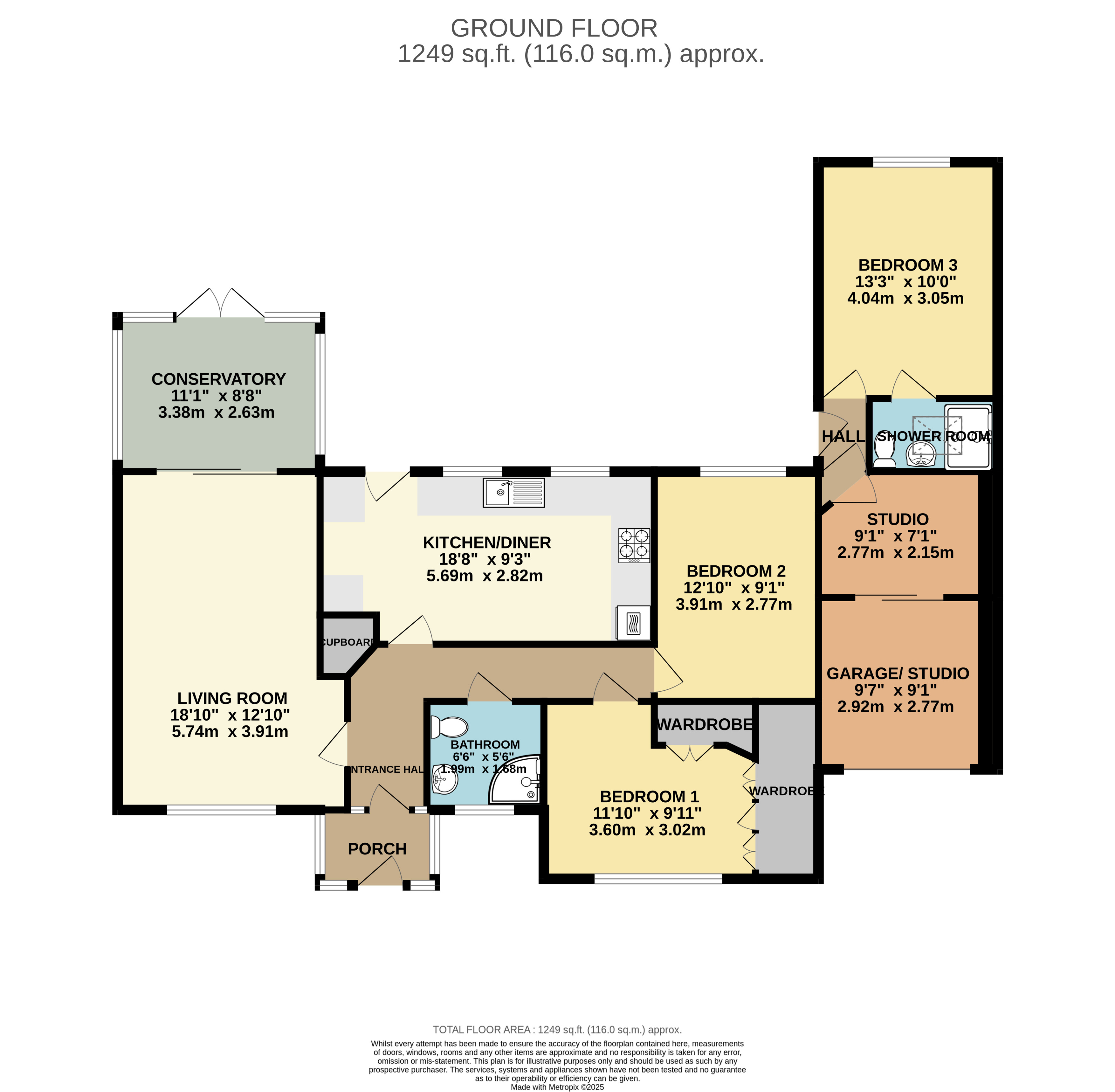 The garage, currently converted into a soundproof music studio, offers excellent versatility and could easily be reverted to its original use if desired. There is also driveway parking for multiple vehicles.