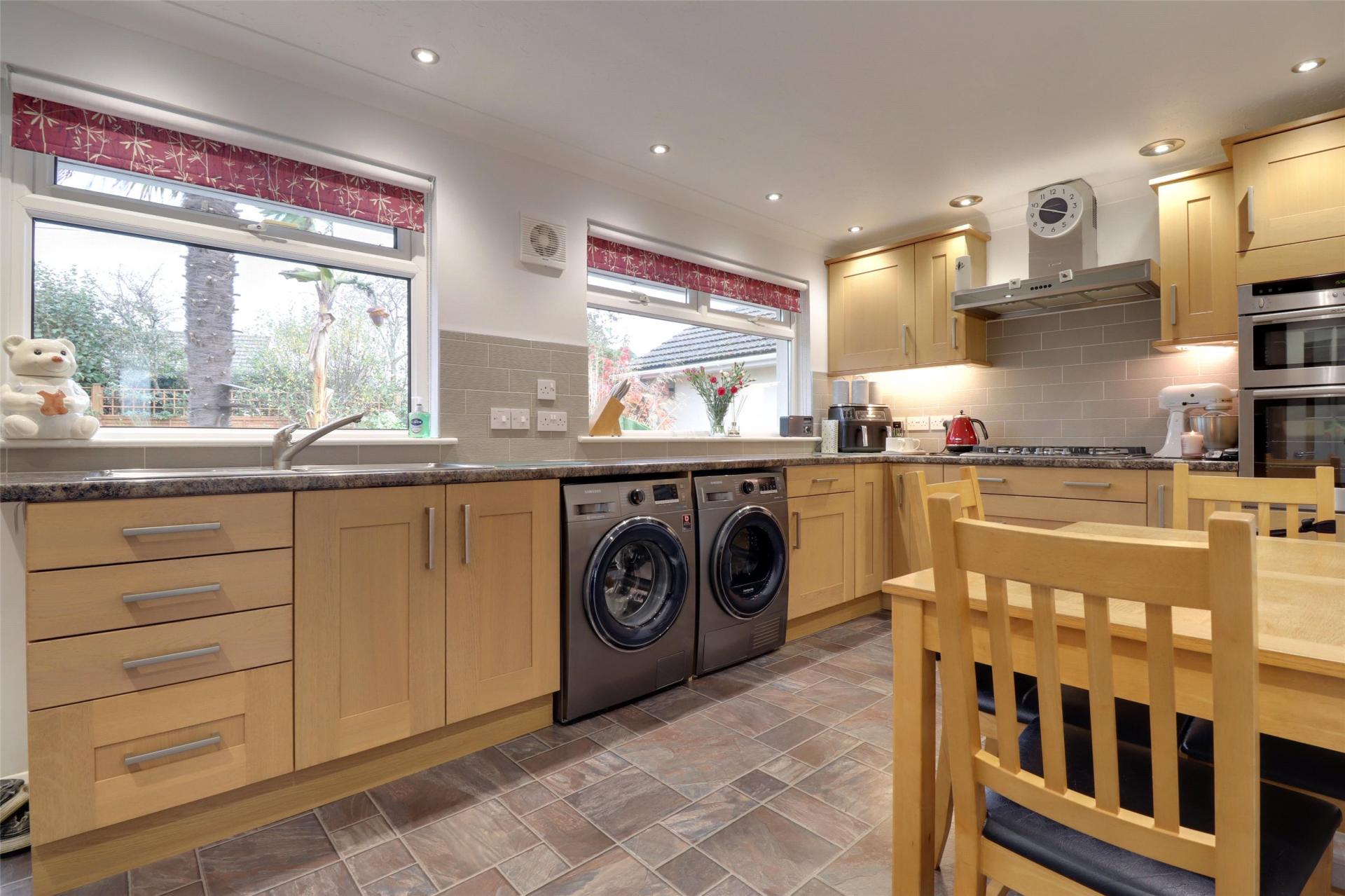 A dual-aspect living room provides an abundance of natural light, leading through to the conservatory overlooking the rear garden. The bright kitchen diner is fully fitted with integrated double oven and five burner hob with door out onto rear garden.