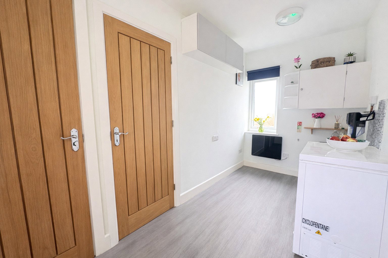 Outside, the property enjoys a block-paved driveway providing ample off-road parking. The lawned rear garden is designed for easy maintenance and includes a garden store with power, ideal for hobbies, storage or workshop use.