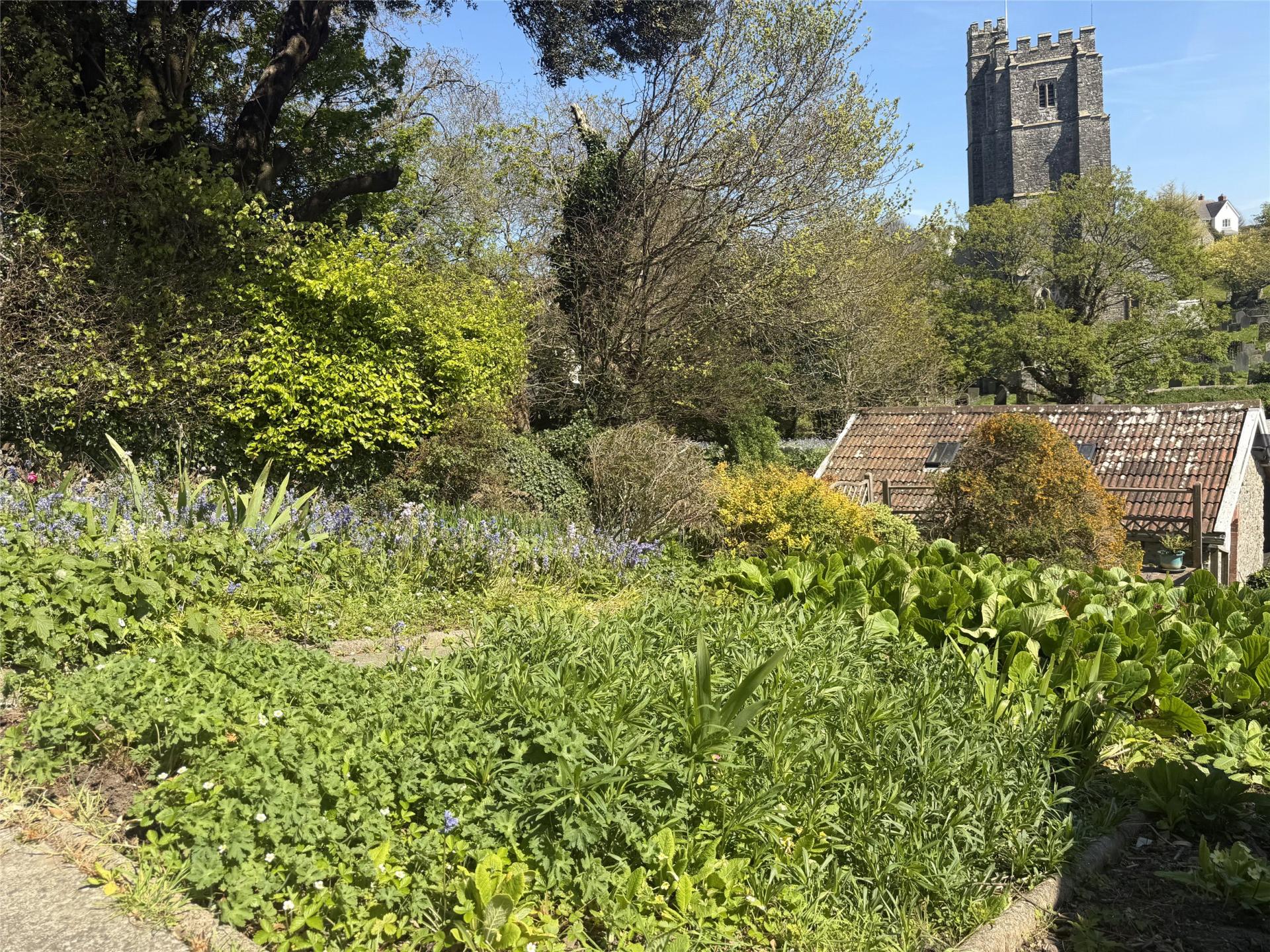 Above the courtyard is a tiered garden enjoying lovely views across the village rooftops towards the church, creating a peaceful and characterful setting. There are raised beds, apple trees and lawn.