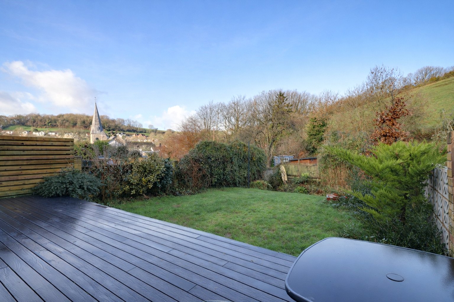 To the front of the property is a raised stone driveway providing parking for two smaller cars or one larger vehicle, with access to the garage and side access to the garden. The rear garden is designed for ease of maintenance and includes composite decking, lawn and mature shrubs, bordered by a natural stream. Rolling hillside views complete the setting.