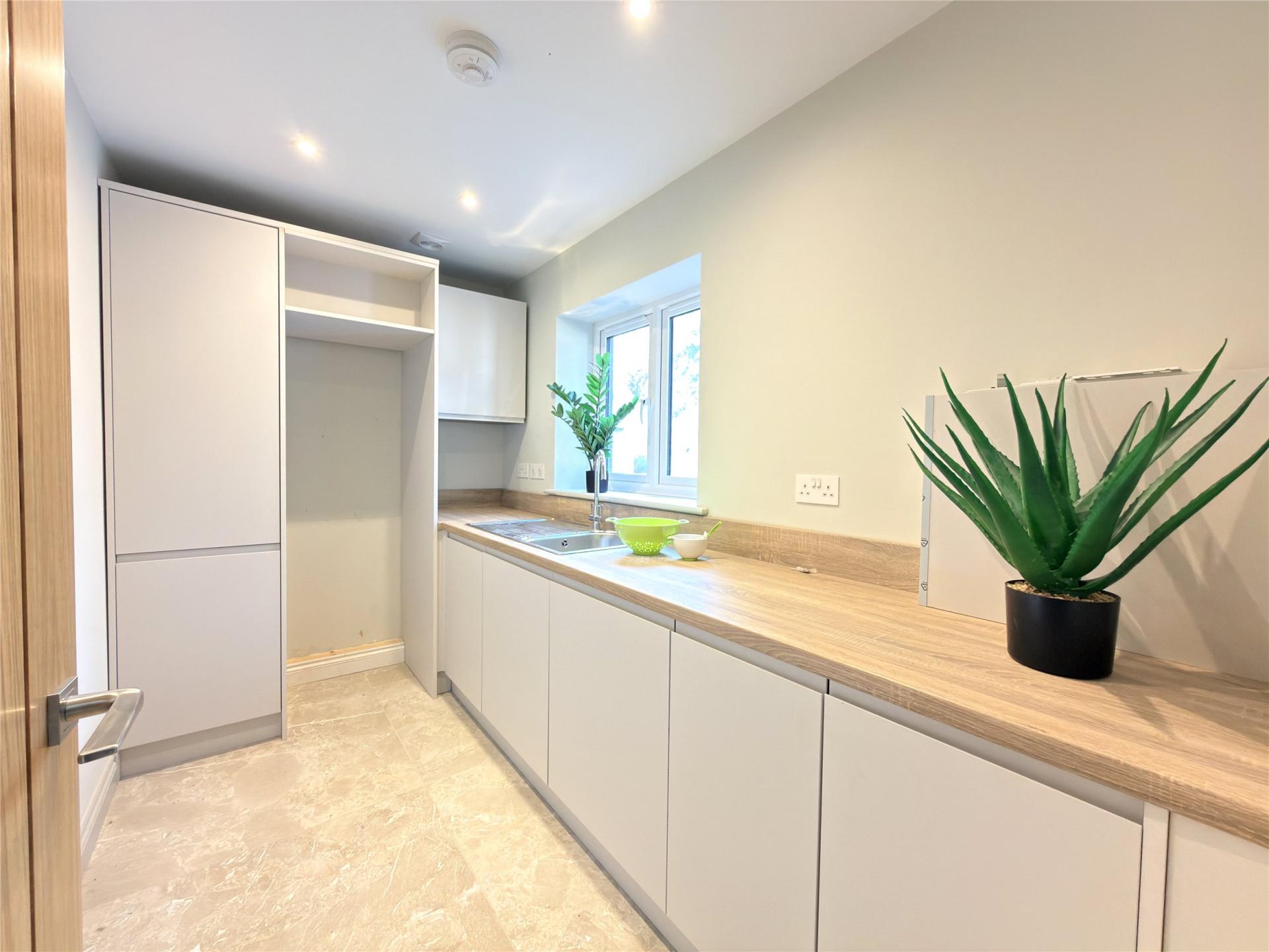 Each home features gas underfloor heating and generous practical space, including a front utility room and a shower room with walk-in shower. To the rear is a large kitchen/dining area fitted with modern units instant boiling water tap, an integrated fridge freezer, dishwasher, oven and a central island. Sliding doors open onto the rear garden, and a natural divide creates a cosy, separate lounge area to the front of the room.