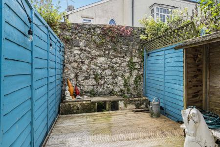 Thoughtfully landscaped for low maintenance, the garden features a sheltered raised decked area ideal for outdoor dining, along with space for bin storage and a log store.
