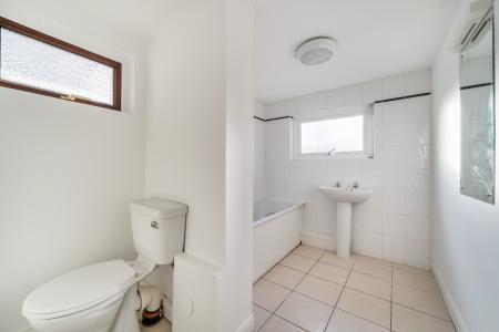 The bedroom enjoys a pleasant outlook across the tear and offers space for essential furnishings, as well as a built-in wardrobe. Completing the accommodation is the bathroom, fitted with a white suite comprising bath with shower over, wash hand basin and WC. Tiled surrounds and a window provide both practicality and natural light.