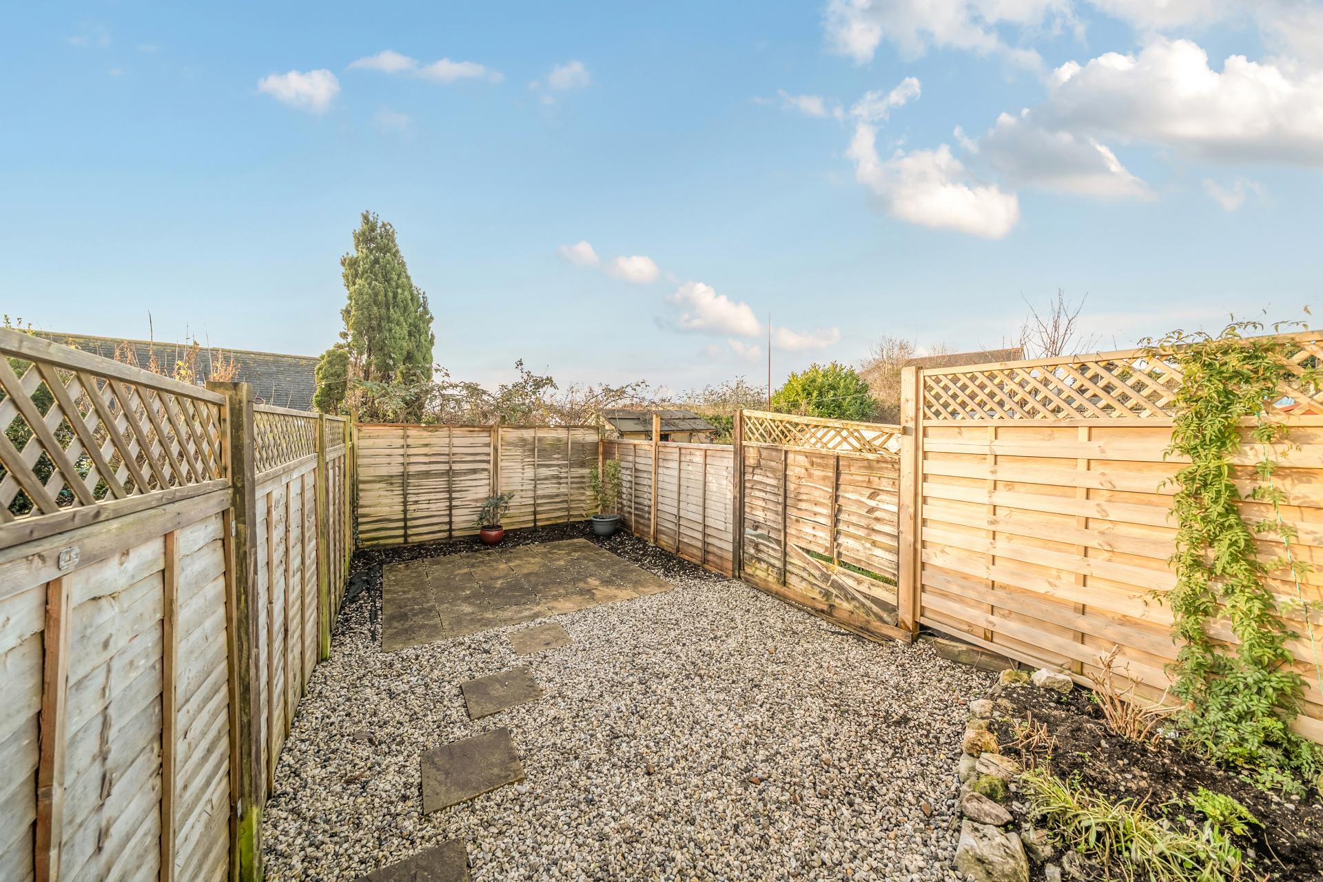 The space is fully enclosed with fencing, offering a sheltered and manageable outdoor retreat that is perfectly suited to those seeking low-maintenance living without sacrificing outside space.