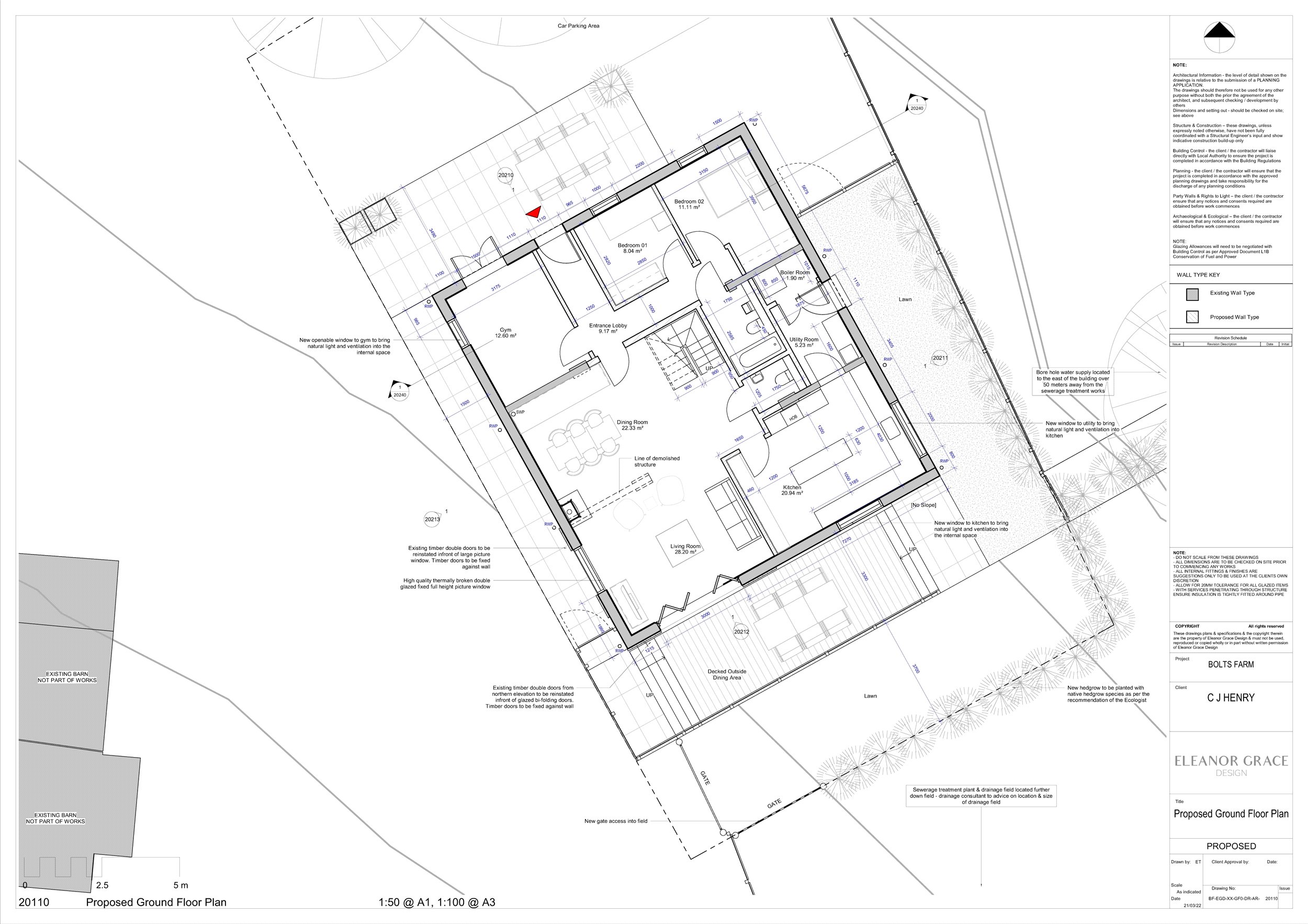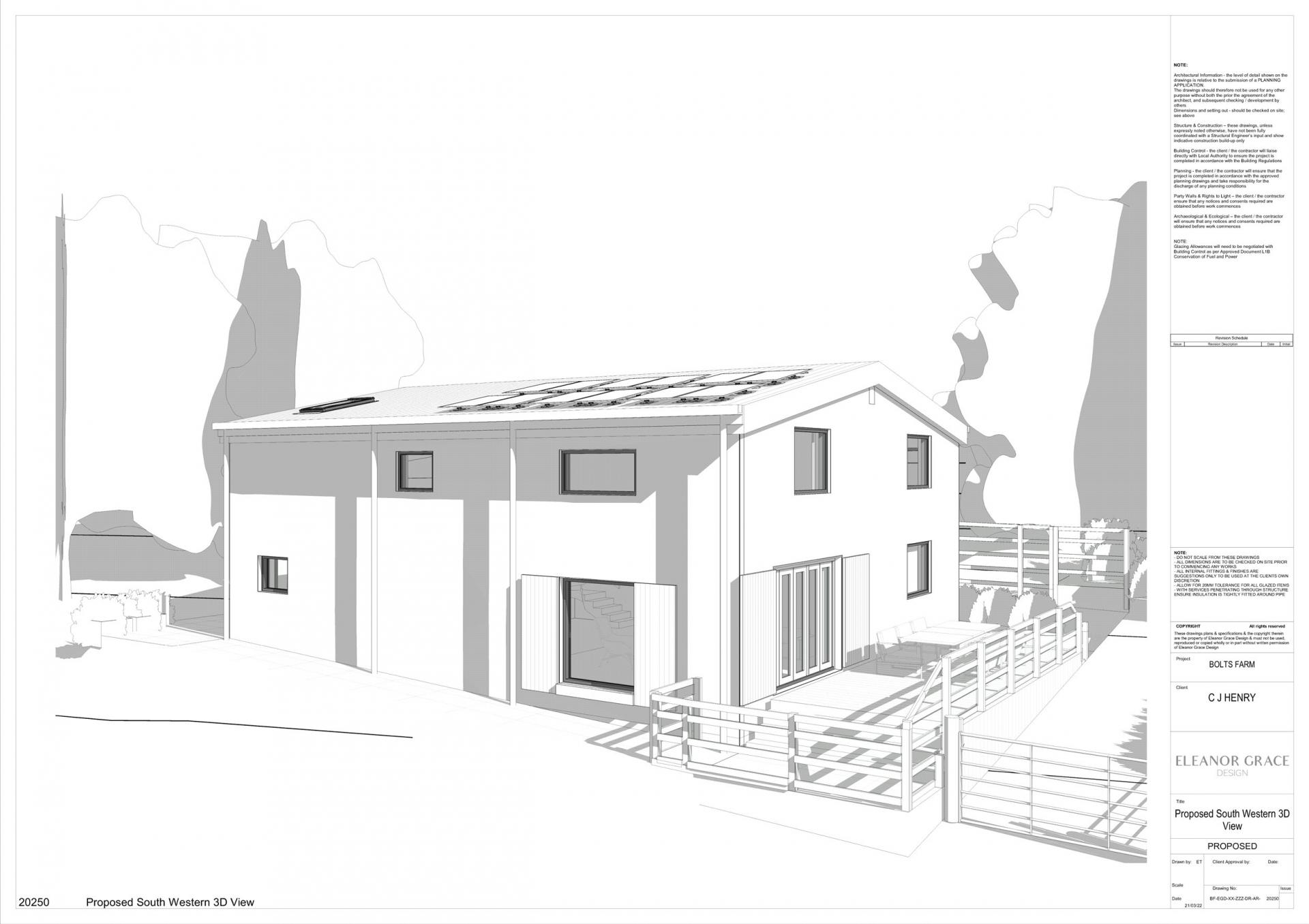 The design and layout that has gone through planning with Torridge District Council (1/0307/2024/FUL) is all about being energy efficient and self-sufficient with 20 Photovoltaic panels to be sat upon the roof, private bore hole for the water supply and private drainage.