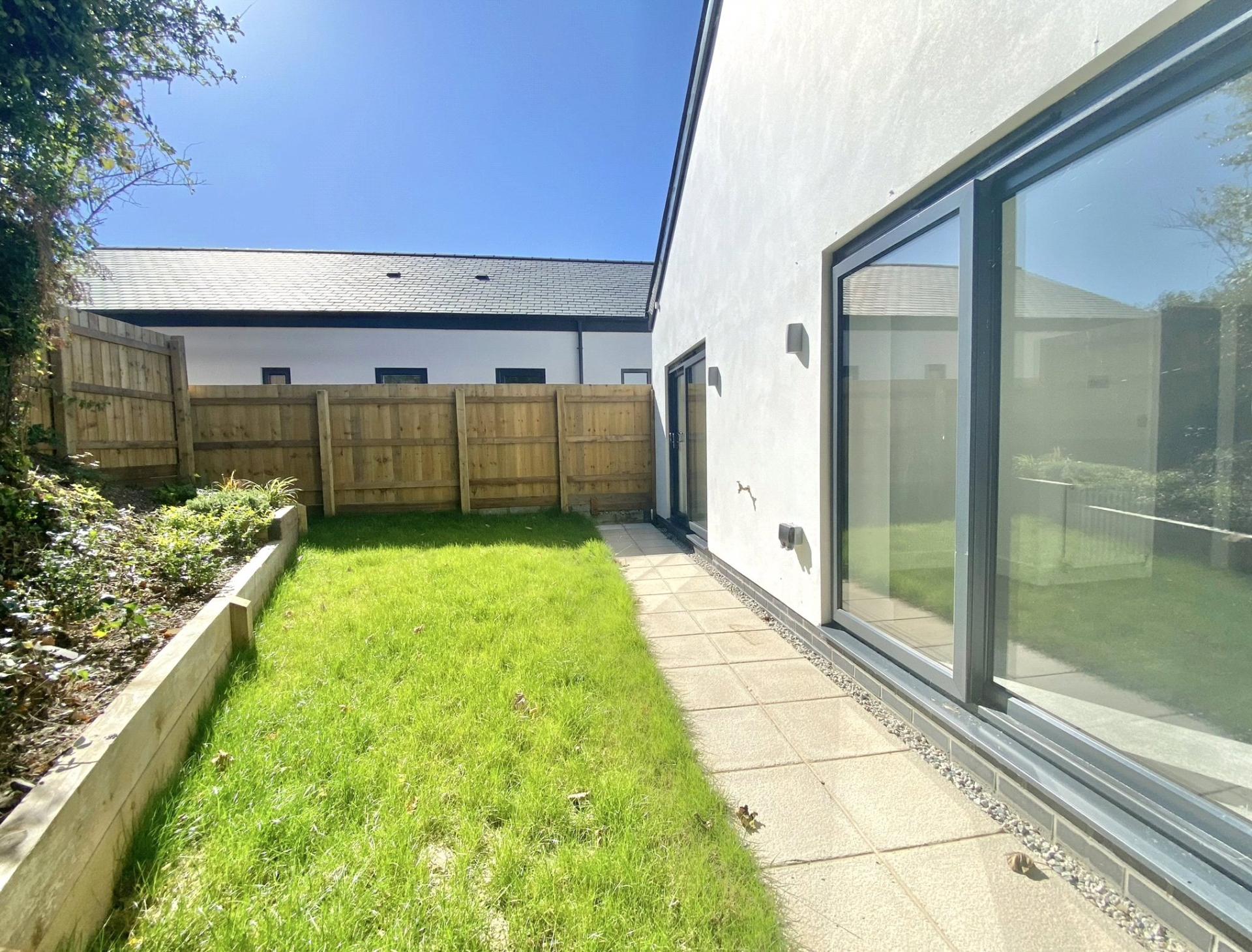 Outside, the house sits at the end of a private cul-de-sac of just 5 similar homes. There is a parking area immediately in front of the property with space for 2 cars with an attractive, low maintenance fence around, an outside tap and outdoor lighting. There is gated access from the left hand side of the property, via steps, up to a side area of garden which is laid to lawn. A paved pathway leads around to the rear garden, which is again laid to lawn and with an outside tap, power points and lighting. The garden is well screened by mature hedging and fenced borders offering a good level of privacy with open fields to the rear.