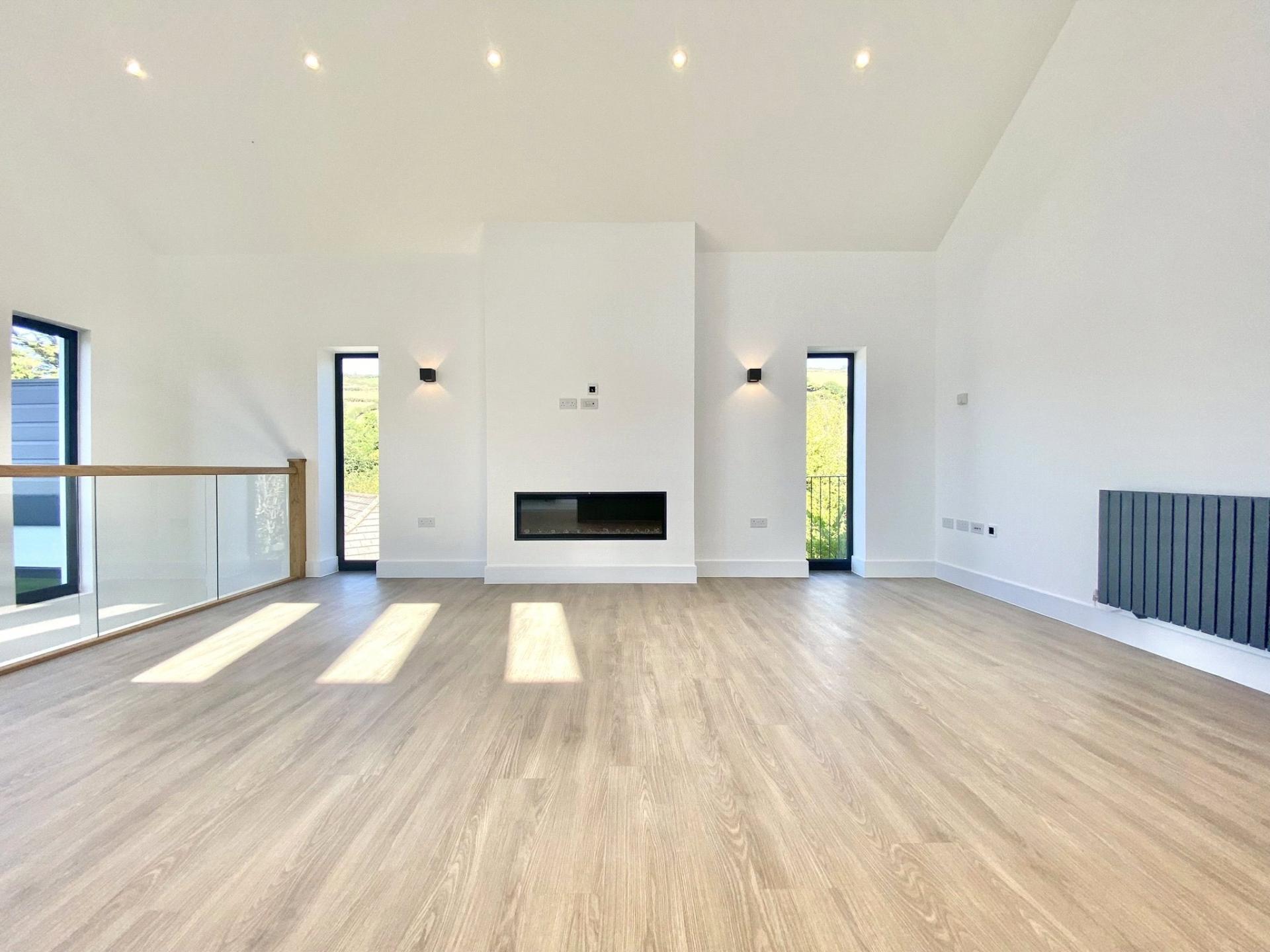23a Spurway Gardens is a fantastic detached family home situated in a sought after and elevated sunny location in the popular coastal village of Combe Martin on the North Devon coast. This beautifully crafted and thoughtfully designed home has been built by highly reputable local developer, Poltair Homes. The house sits at the end of a small a newly built cul-de-sac of just five properties and has light-filled stylish and contemporary accommodation perfect for modern day living. Because of its elevated position, the property enjoys delightful and far reaching views to a wide vista over the village, taking in the surrounding countryside and wooded hillsides. The home lies on the sunny side of the valley meaning it benefits from plenty of sunlight throughout the duration of the day. The spacious light-filled rooms with their high and vaulted ceilings coupled with full height glazing sets this house apart from others on offer in the immediate area.