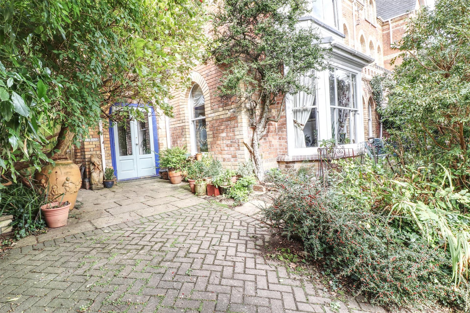 To the front, a brick-paved driveway offers off-road parking for three or four vehicles, while mature planting and trees create a private and inviting approach to the house. Flower beds and shrub borders continue along the side of the property and wrap around to the rear via a side gate.