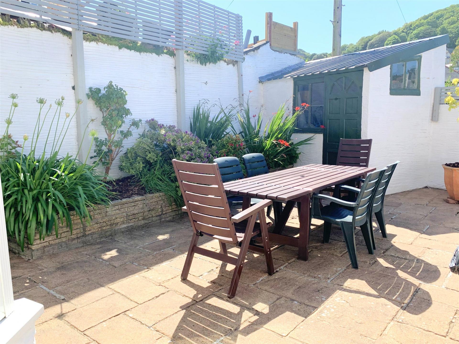 Outside to the rear of the property is a fully enclosed and extensively paved rear garden with stone wall borders, flower beds and a store shed for convenience. A side access path leads to the property front.