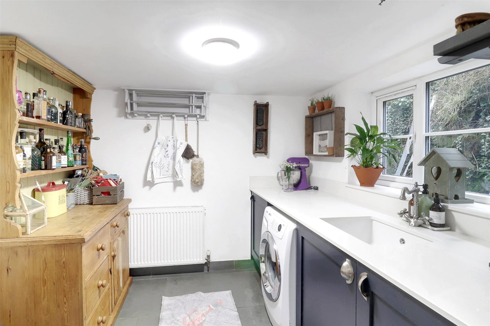 The stylish kitchen is fitted with real wood cabinetry, Apollo Quartz worktops and a double Belfast sink, complemented by natural slate flooring and a breakfast area. This space flows seamlessly into a well-appointed utility room, continuing the same high-quality finishes and providing excellent practicality.