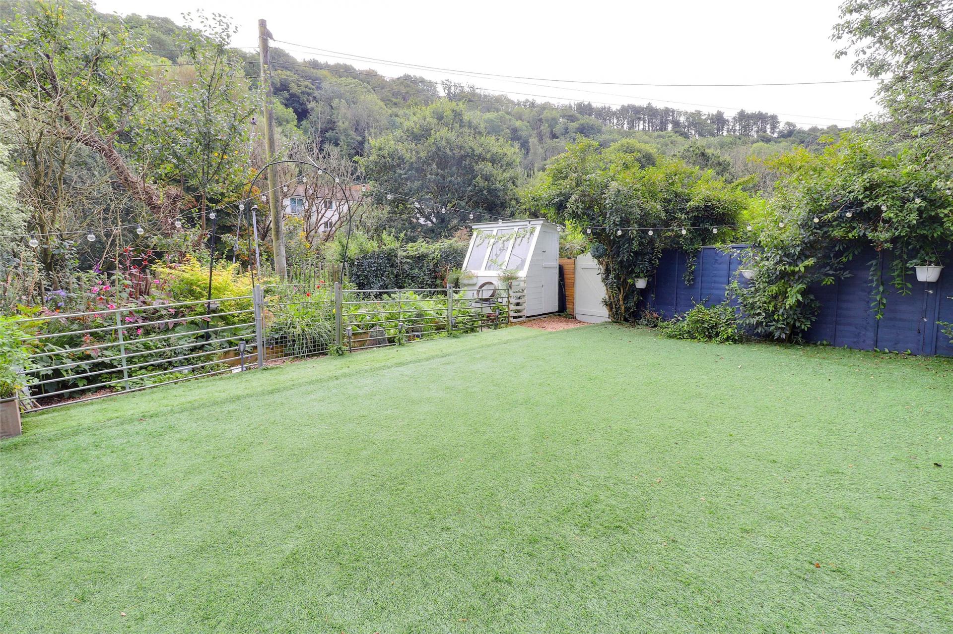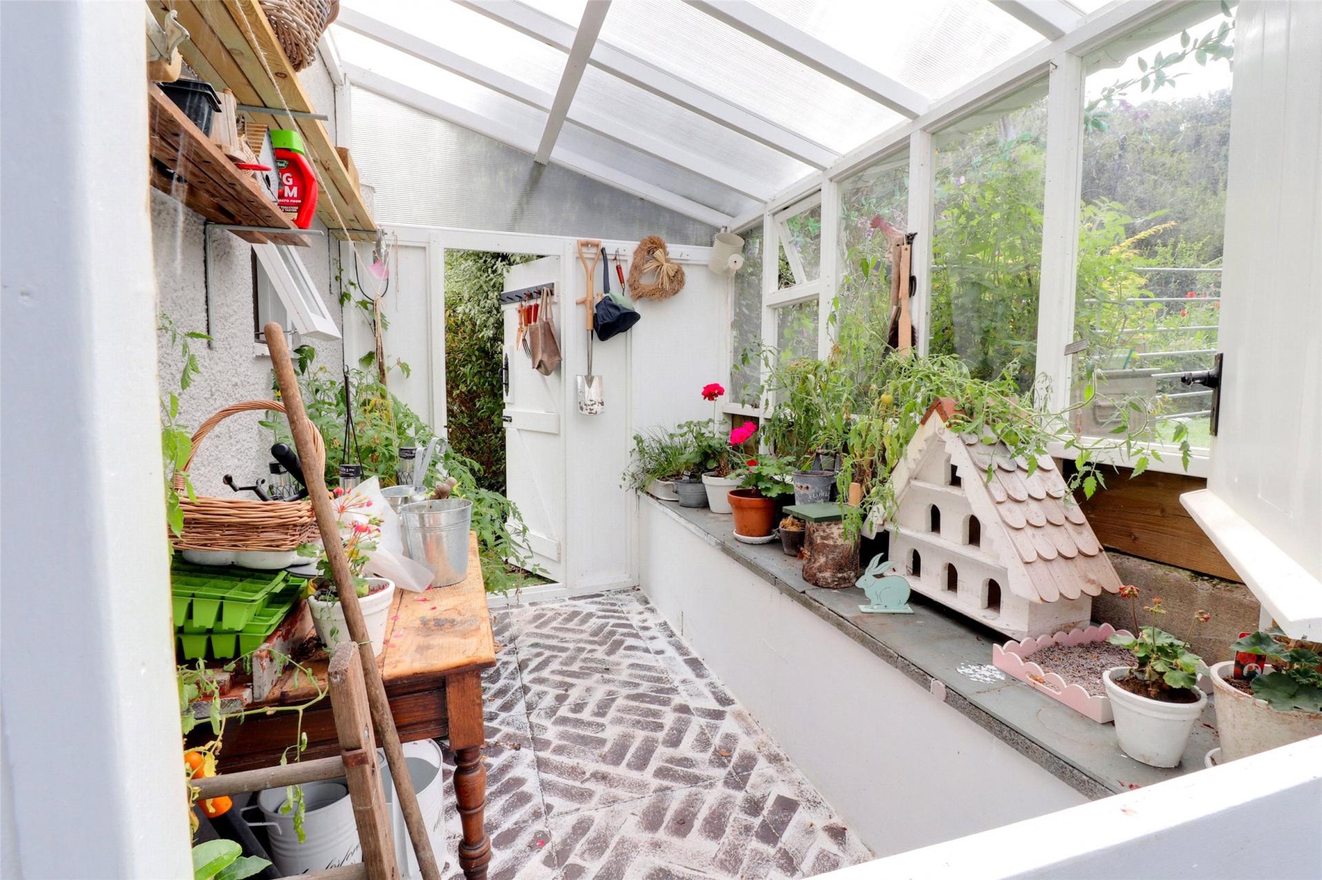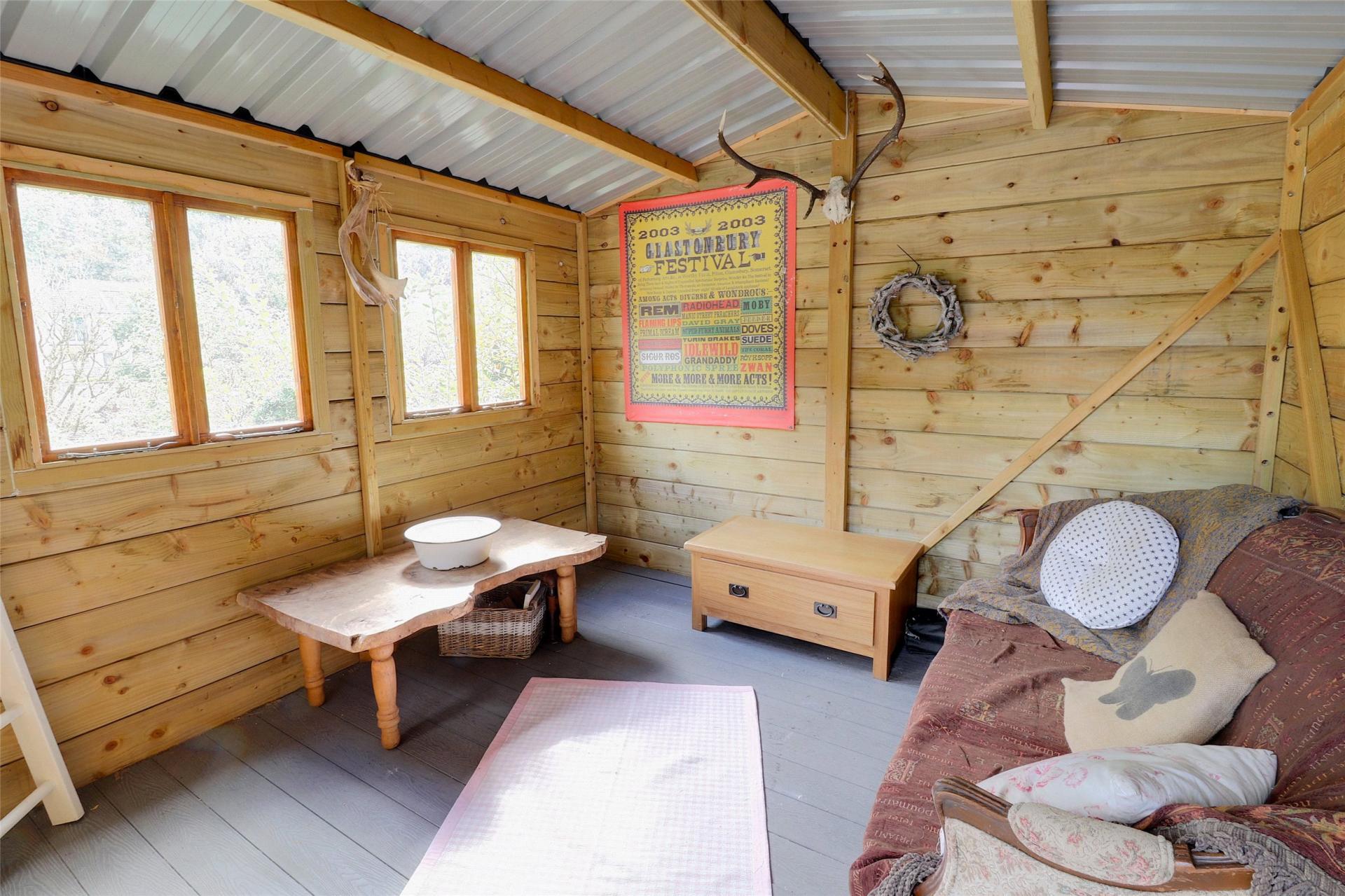 To the rear of the property, the garden offers a level area laid with artificial turf, leading through to a picket-fenced allotment area. A bespoke lean-to timber greenhouse will appeal to keen gardeners, while a large composite decking area provides an outstanding space to enjoy the surrounding views and outdoor setting.