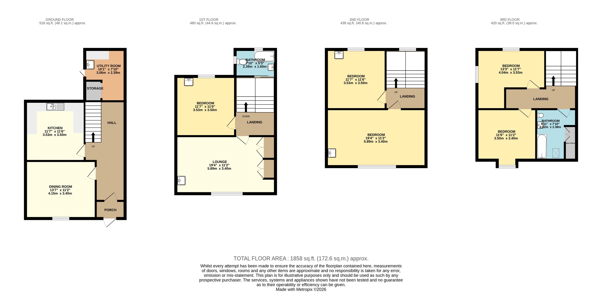 The accommodation unfolds across four floors and is both generous and versatile. On the ground floor a welcoming dining room and kitchen create a natural hub for the household, with a utility area to the rear leading out into a small courtyard with useful storage. The first floor is home to a spacious lounge, a room that makes the most of its position with large windows framing spectacular views over the harbour. Also on this level is a comfortable double bedroom.