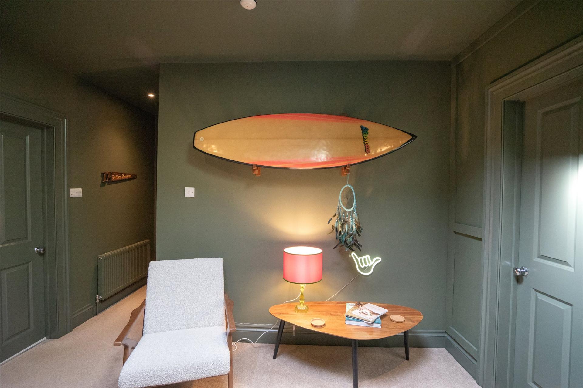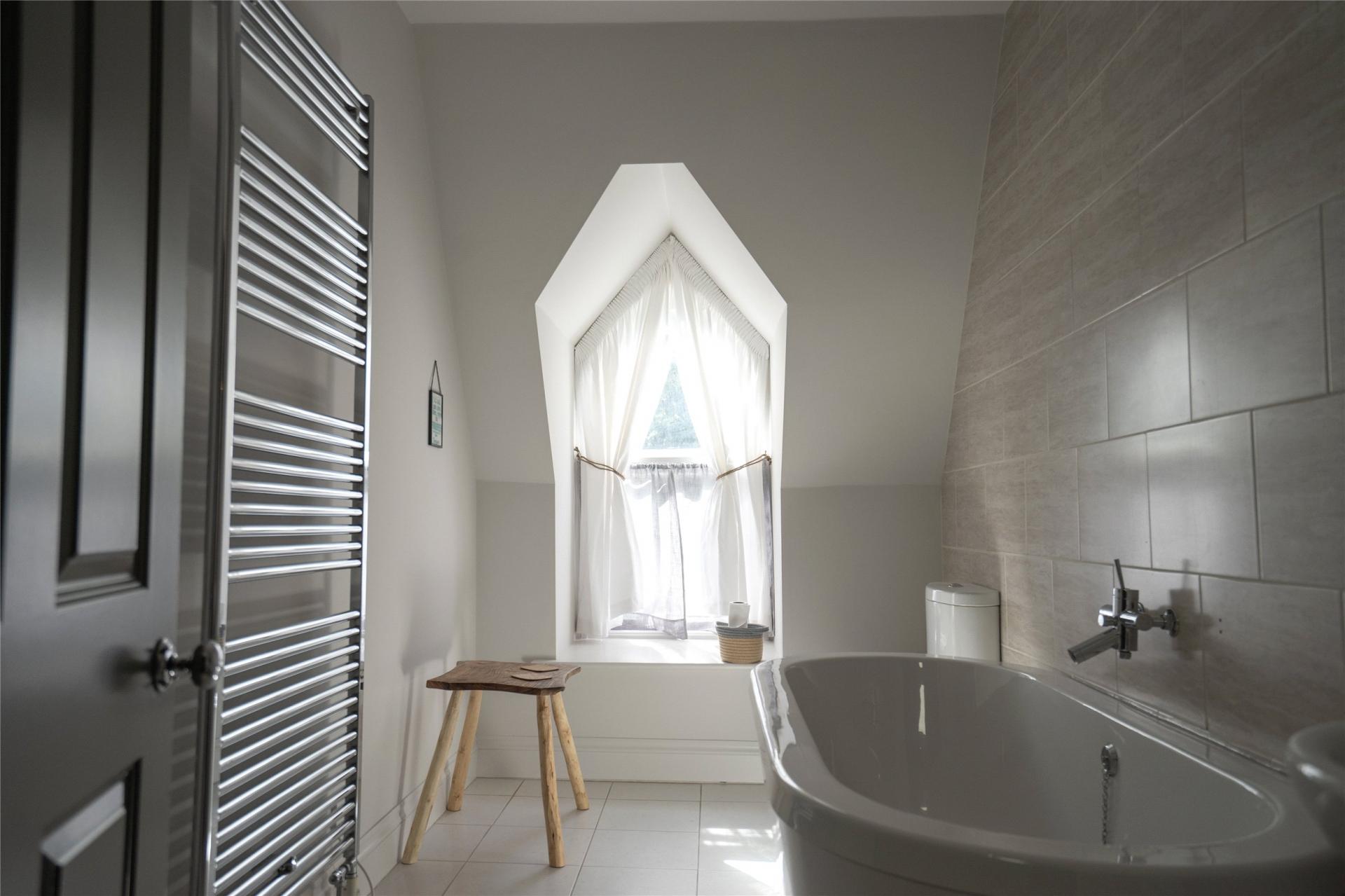 The apartment is accessed via a communal hallway and large original staircase which has an elaborate Victorian balustrade. The entrance to the apartment is at first floor level in to a private lobby which has an internal staircase with a useful store cupboard under leading up to the main accommodation. There is a large central landing with a roof window allowing plenty of light to flood in. The superb living room measures an impressive 30 feet in length, as mentioned earlier, and has feature 'gothic style' windows to the rear with, both with window seats, enjoying uninterrupted views across the neighbouring green towards the picturesque harbour and pier, Damien Hirst's Verity statue, Lantern Hill, Hillsborough, the Bristol Channel and distant Welsh Coast. The kitchen is fitted with a range of modern units together with various integrated appliances including an electric hob with extractor canopy over, a double oven, microwave, fridge and freezer and a dishwasher. There is a breakfast bar/room divider and a window to the side which also enjoys views over the town towards the sea.