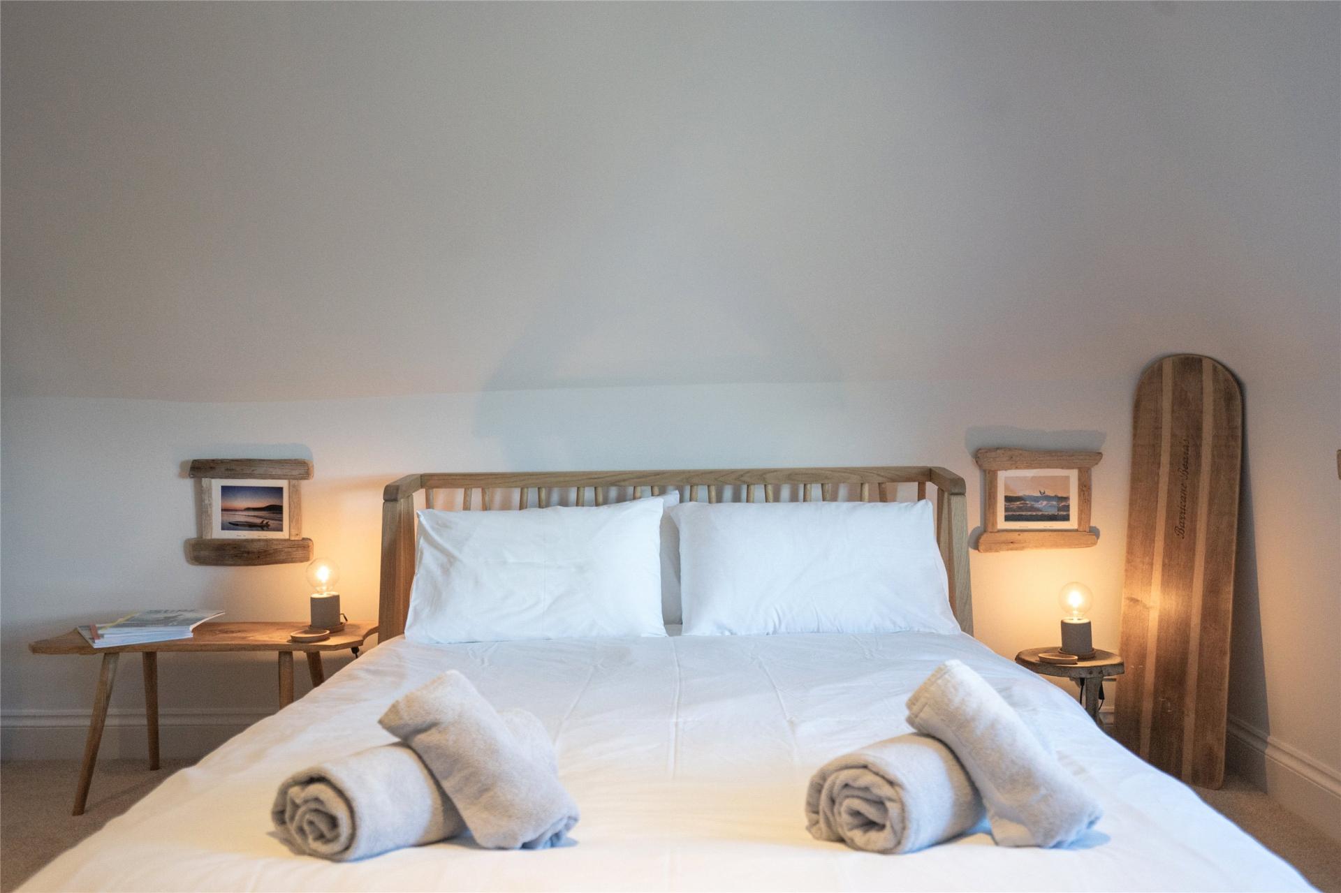 The master bedroom is a spacious double room with views from the side towards the sea. There is an en-suite shower room with a walk in shower cubicle, low level wc and a wash hand basin. Bedroom 2 is also a double room and the family bathroom has a contemporary white suite which includes a large bath, a low level wc and a hand basin.