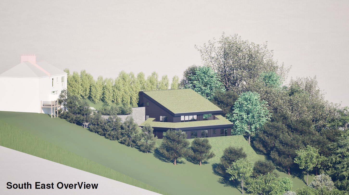 A standout feature of this property is the full planning permission granted for the construction of a highly individual, modern detached dwelling within the rear garden. Designed to blend seamlessly into the hillside, the proposed new home will enjoy the same stunning views and include vehicle access via a reconfiguration of the existing property’s ground floor — specifically the removal of the current kitchen, WC, and garage/utility space.