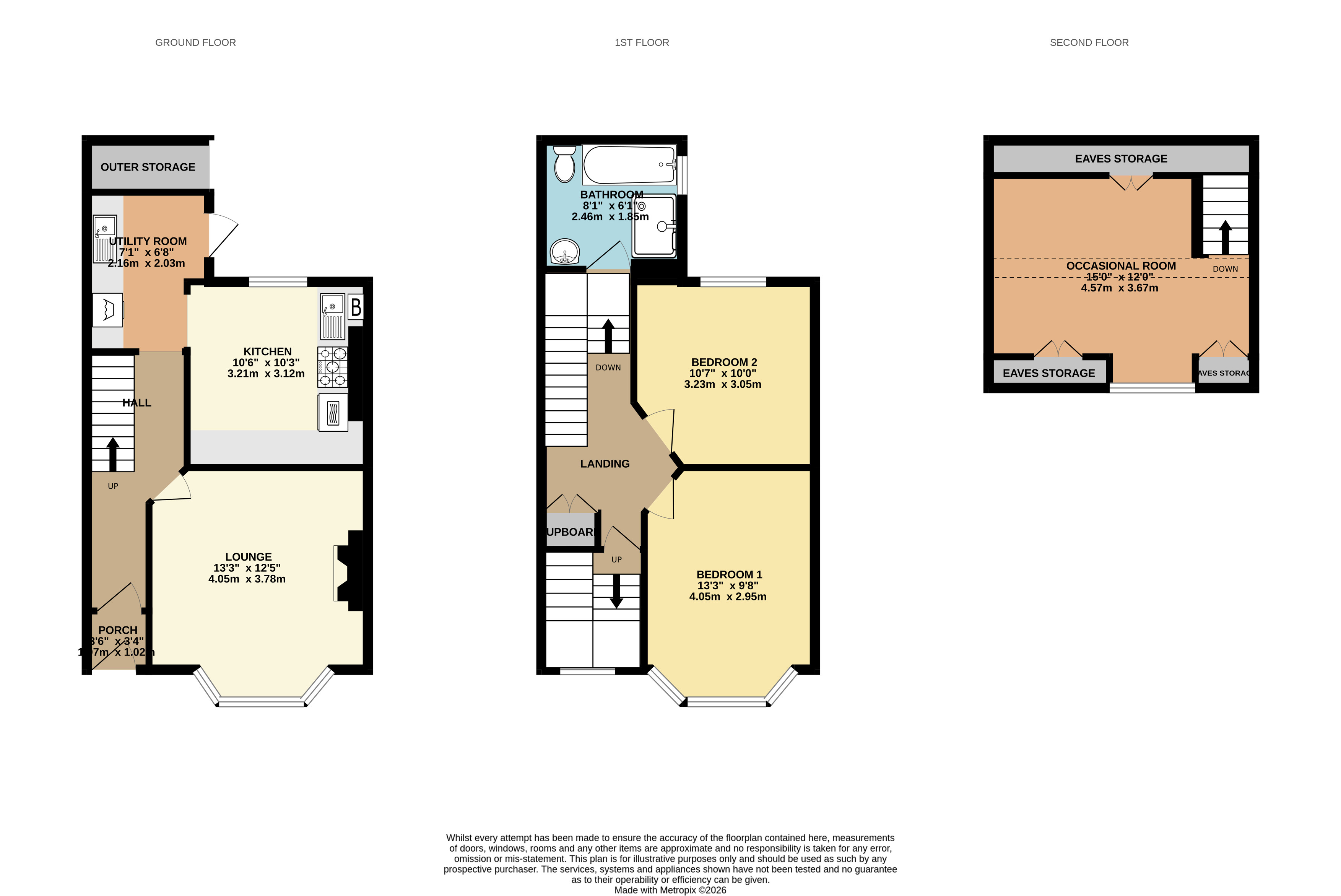 The second floor adds a very useful occasional room, offering valuable flexibility depending on a buyer’s needs. Whether used as a separate snug, workspace or hobby room, it provides an adaptable extra area together with generous eaves storage.