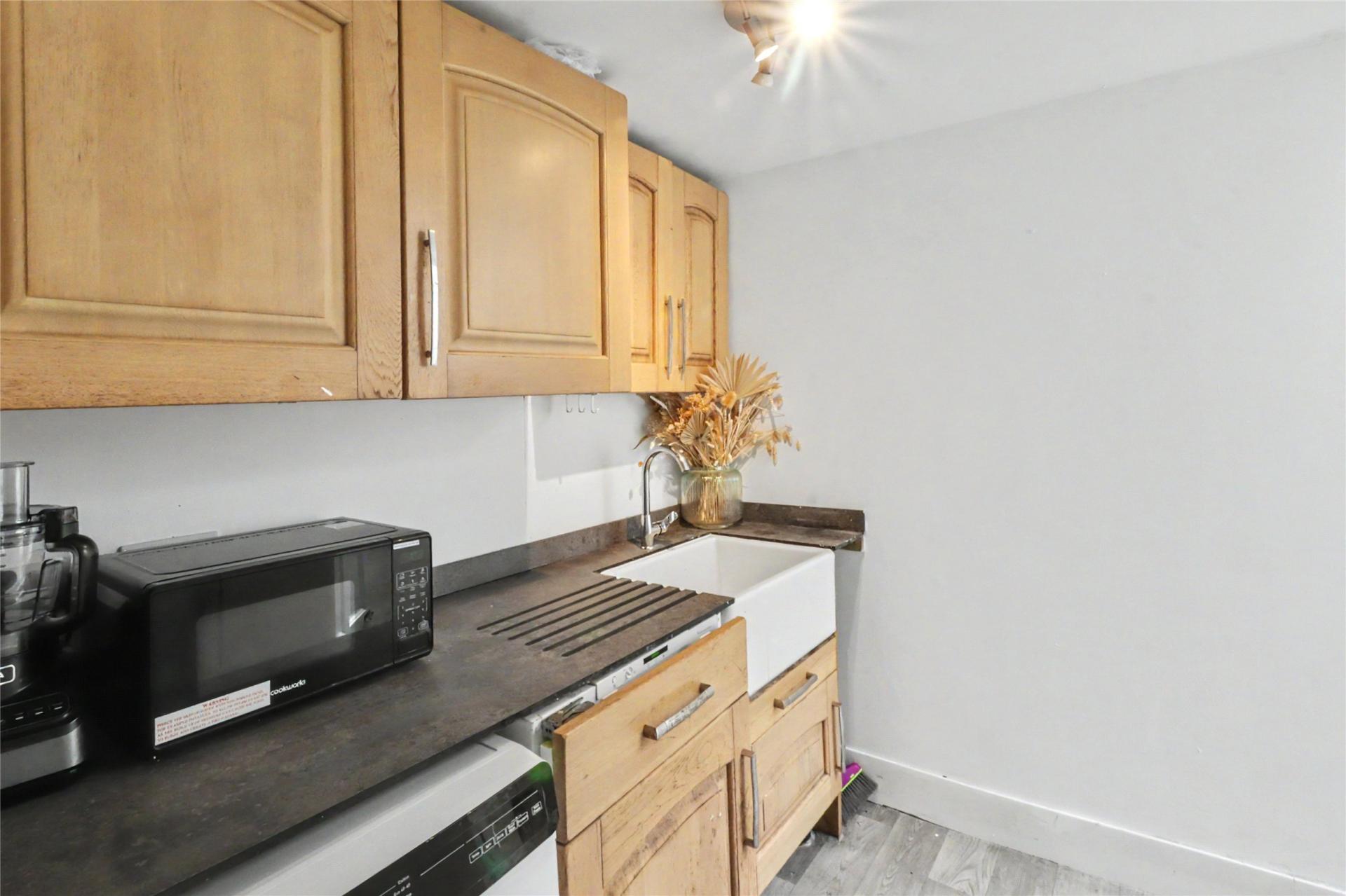 Further along the hall, the kitchen is well proportioned and fitted with a good range of wall and floor units, together with a stainless steel sink and drainer, a five ring gas hob and a built in cooker. The gas combi boiler is also located here, keeping the layout practical and efficient for day to day use. To the rear, a useful utility space adds further storage and worktop potential, with additional wall and floor units, undercounter space for a washing machine and a built in Belfast sink.