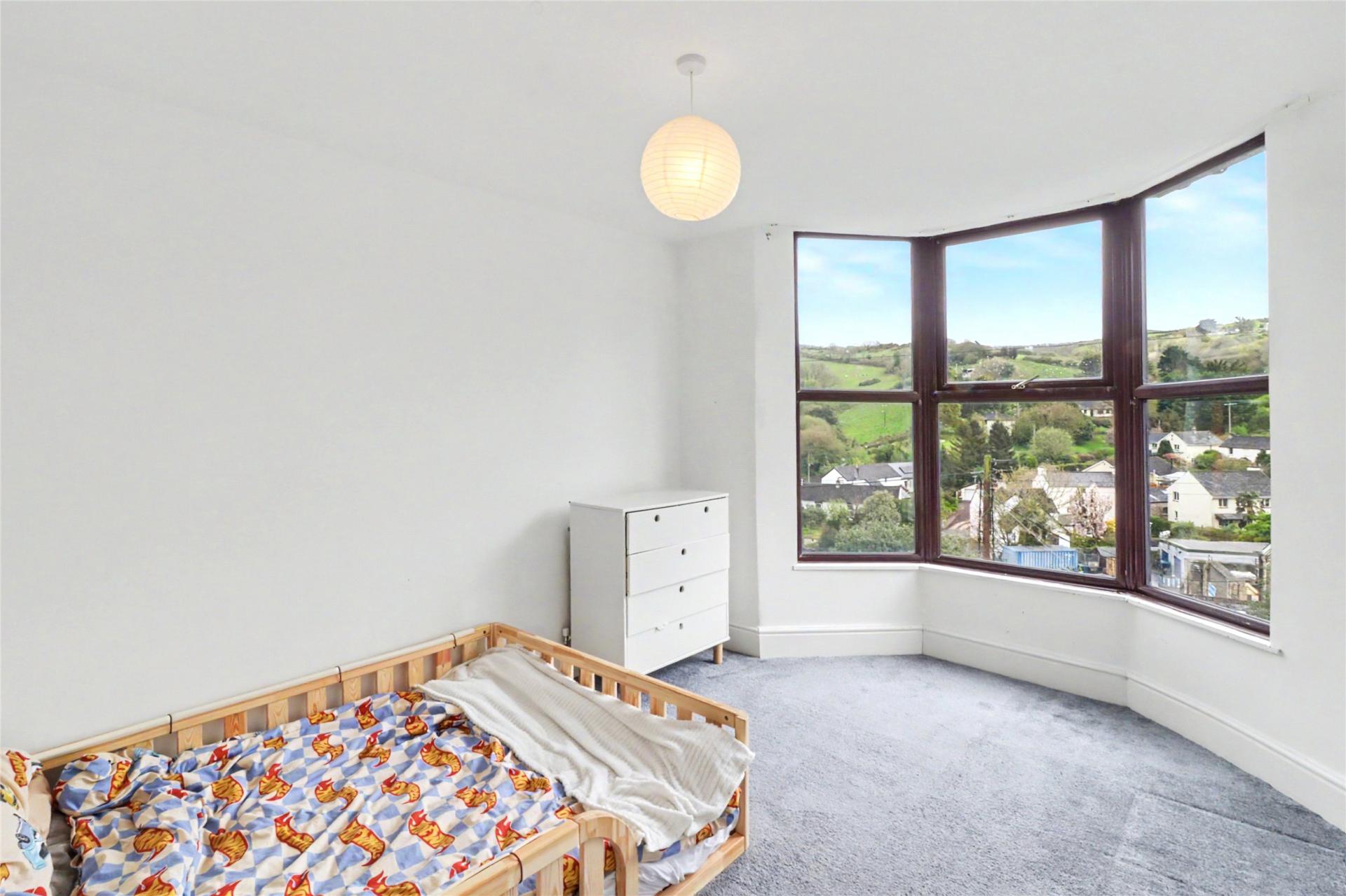 On the first floor, the half landing gives access to the bathroom, fitted with a hand basin, w.c, bath and shower, with tiled finishes adding a clean and practical feel. On the main landing, the rear bedroom is the smaller of the two doubles, though still a good size and well suited as a guest room, home office or comfortable everyday bedroom. The principal bedroom sits to the front and benefits from countryside views, giving it a particularly attractive outlook.