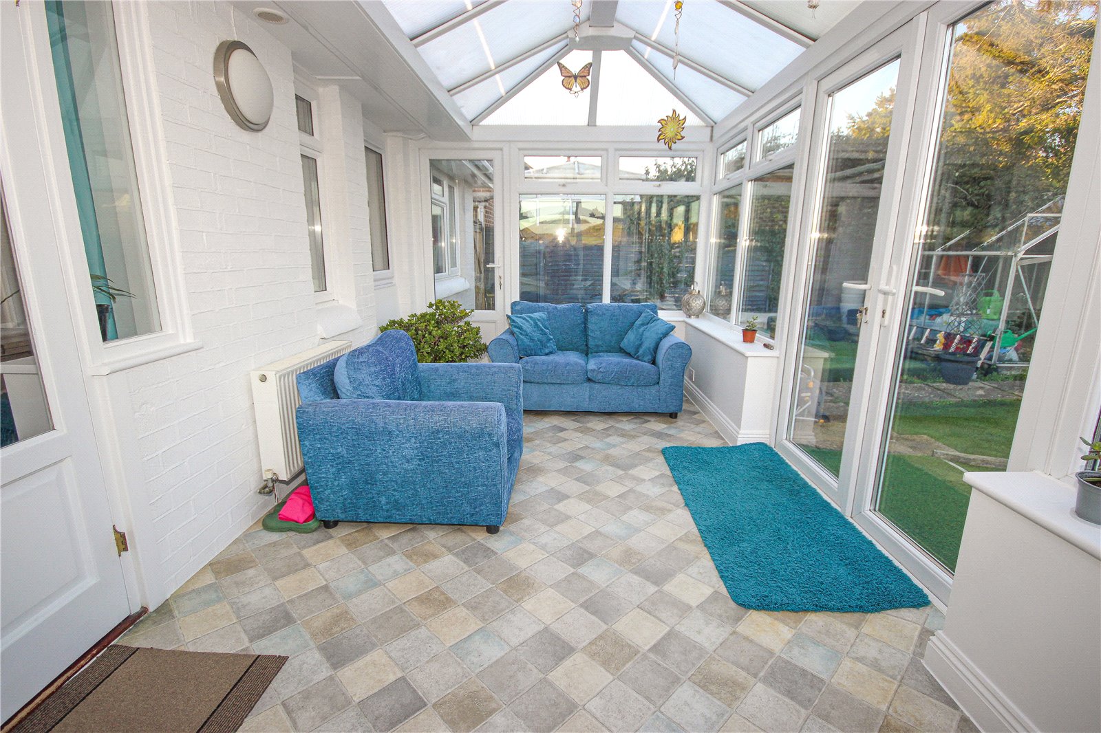 Double doors lead out to the conservatory which has laminate flooring and heating and overlooks the rear garden, as well as benefitting from far reaching views East towards the Axe Estuary and surrounding countryside. Double doors lead out from the centre into the garden and there is an additional pedestrian door to one side.