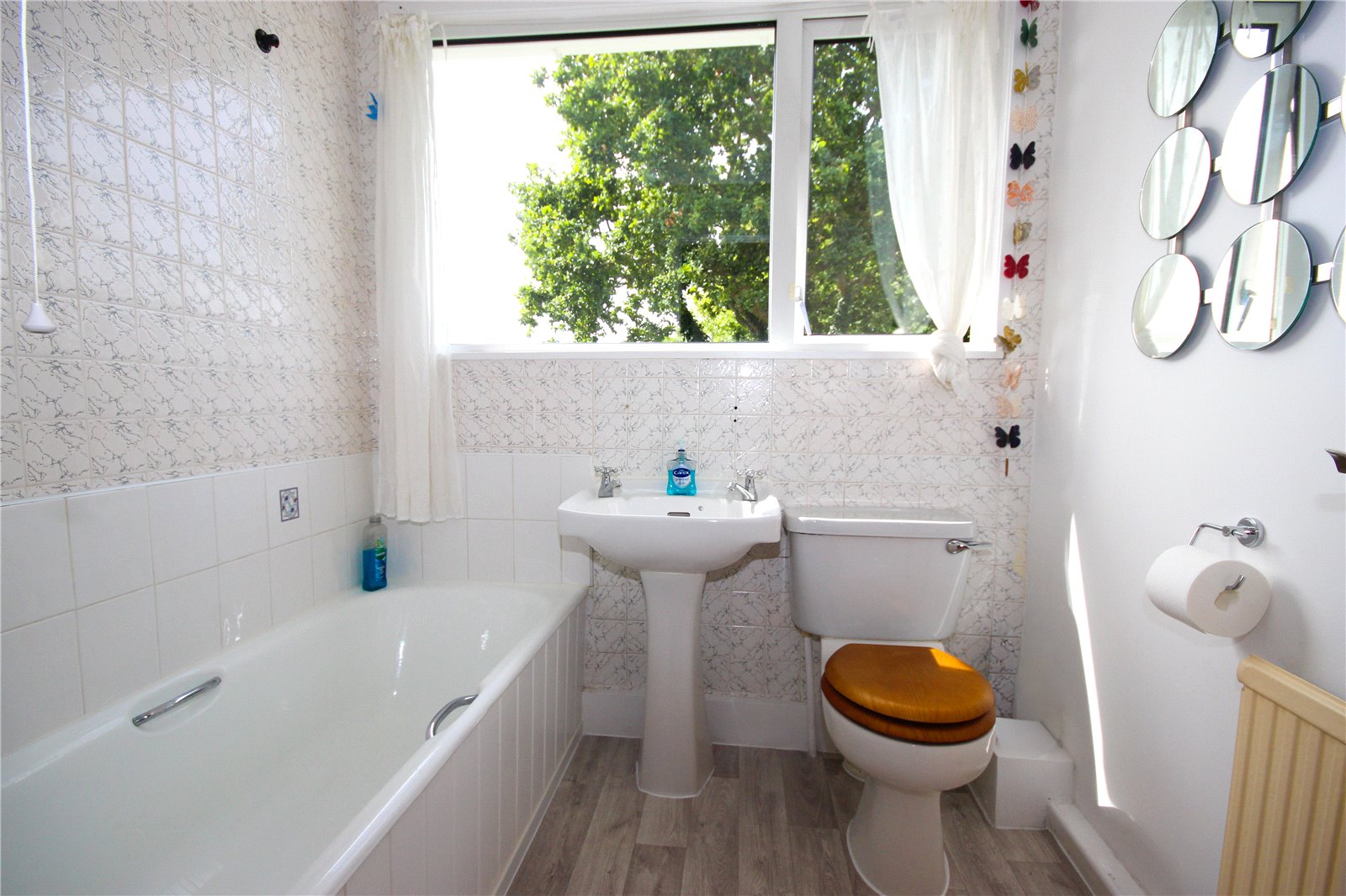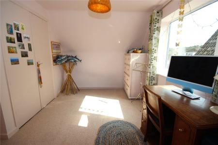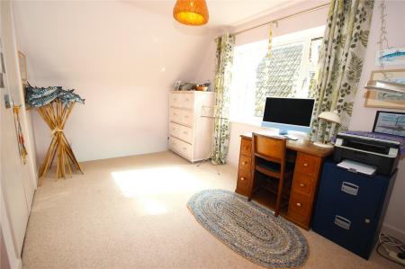 Stairs rise from the entrance hall to the first floor landing which benefits from an airing cupboard with slatted shelving housing the hot water cylinder. Doors lead either side to the remaining two double bedrooms both of which have large picture windows looking out across the front and rear garden alongside access to the eaves and built in wardrobe storage. There is also a bathroom with panelled bath, WC and pedestal wash basin with window to the rear.