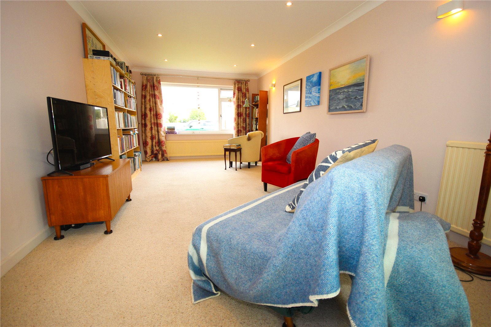 A door on the left hand side opens to a large open plan living/dining room with a picture window to the front overlooking the front garden. Sliding patio doors then open into a sun room which overlooks the rear garden with French door providing access to the rear.