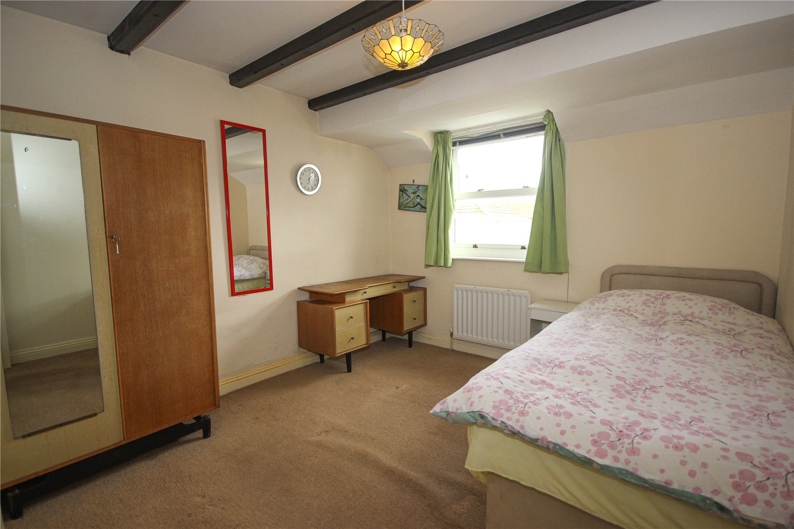 A canopy porch gives cover over the front door which opens directly to stairs which rise and turn to the first floor. The stairs open directly into a large open plan living/dining room with mock beams to ceiling, wood effect laminate flooring and three windows. A door then leads directly into kitchen, which is fitted with a range of matching base and wall units with worktops. The kitchen has an inset electric hob with oven beneath and extractor over, a one and a half bowl white enamel sink and there is space for an upright fridge/freezer. The wall mounted gas central heating boiler is also in the kitchen which has one window to the side. From the living area, a hallway which leads through to the bedroom accommodation. In the hallway there is a large cupboard with hanging rails with sliding doors and an airing cupboard with slatted shelving. There are two double bedrooms, one with fitted wardrobes and both with windows looking out to the front with distant views to the Axe Cliffs. In addition, there is a wet room with WC, wash basin and a shower area with seat and handrail and is partially tiled with non-slip flooring.
