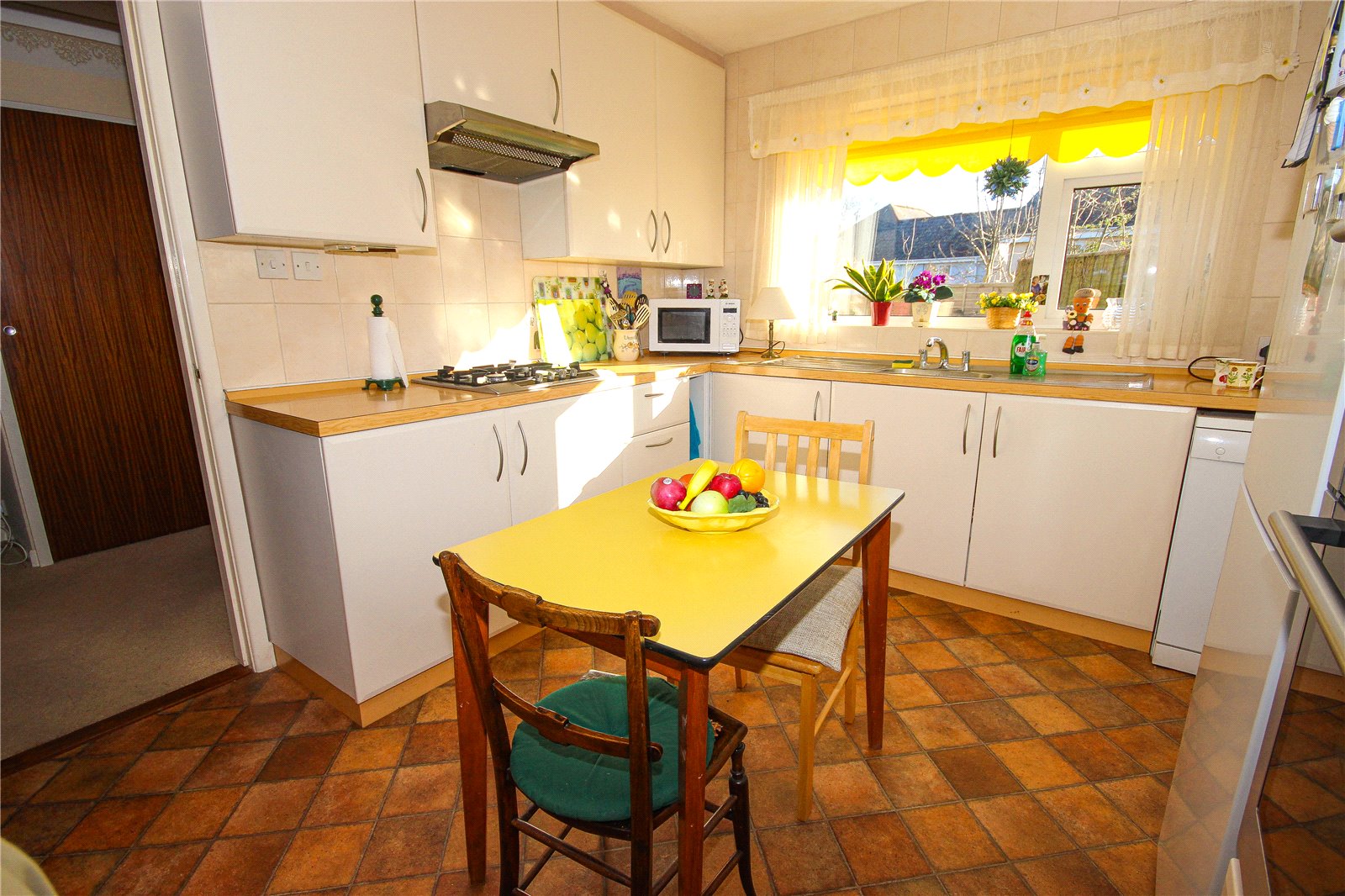 The entrance porch gives access via inner door into the entrance hallway with understairs storage cupboard. Immediately on your left is a well-proportioned living room which has dual aspect with window to front and patio doors to the rear alongside central gas fireplace. There is also a separate dining room with serving hatch to kitchen and large picture window to front.