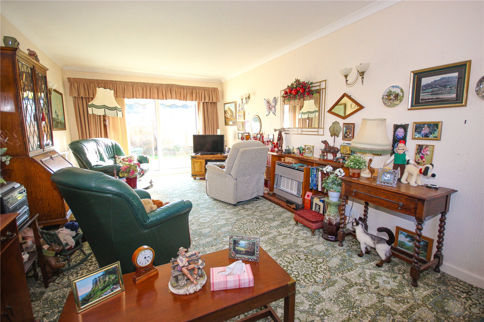 28 Riverdale benefits from attractive front and rear gardens alongside a paved parking space in front of the attached garage for one vehicle. The front garden is mainly laid to lawn interspersed with mature flowering shrubs and plants in various beds. A paved pathway leads up to the front door and wraps around to either side of the bungalow to wooden pedestrian gates giving access to the rear.