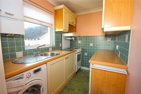 The kitchen is fitted with a range of matching base and wall units, tiled splashback, sink and space/plumbing for slot in cooker and washing machine. The kitchen also houses the gas central heating boiler.
