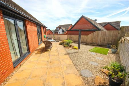 Steps to the side of the garage leads to a pedestrian gate and a further large raised garden area which is laid to gravel with a circular seating area with artificial grass. Lovely views are enjoyed from here towards the Axe Estuary and countryside in the distance. A pedestrian gate to the side of the garage leads back to the front of the property. The whole garden is enclosed with a mixture of panelled fencing and walling.