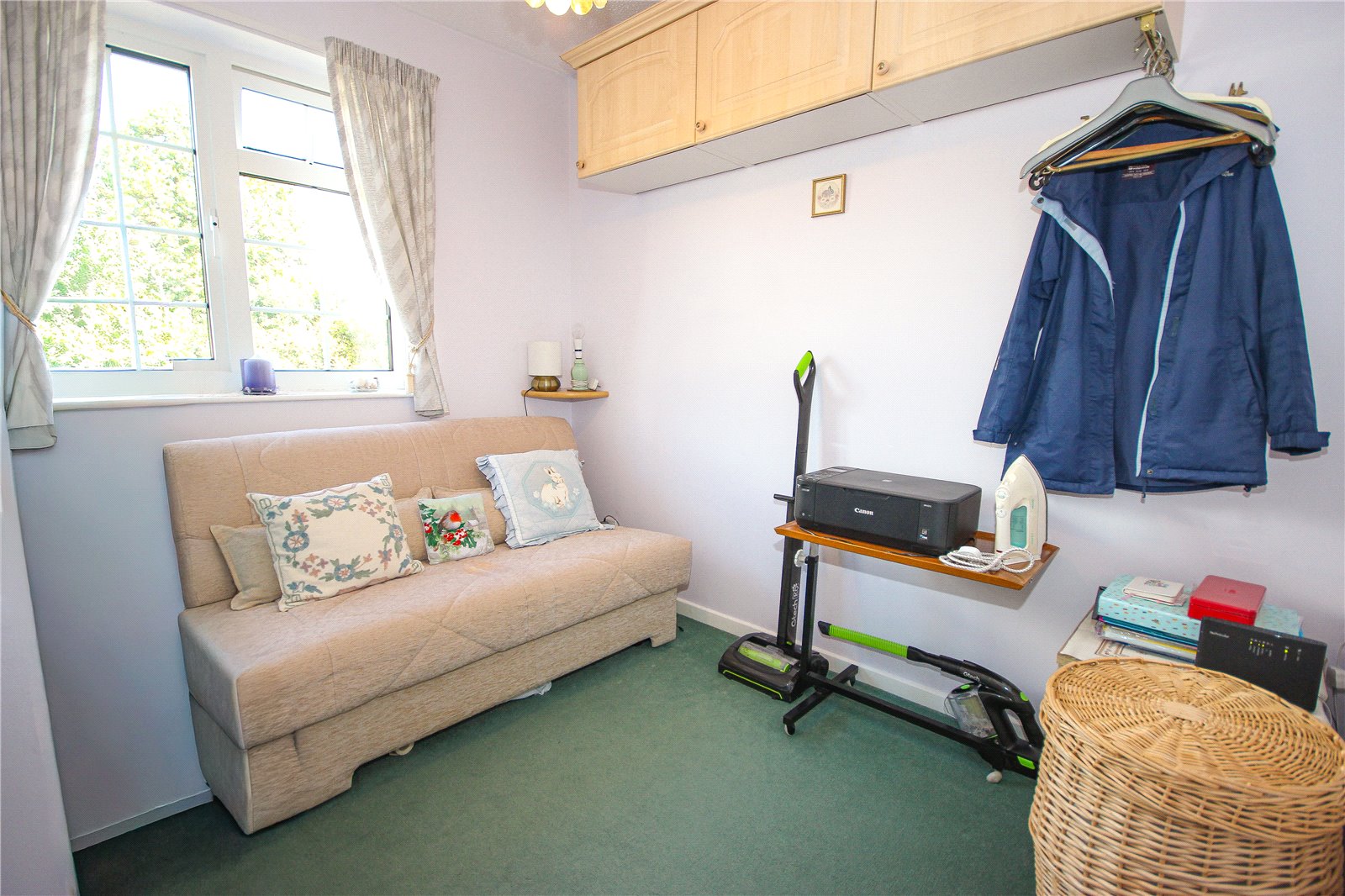 The front door opens to the entrance hall with a glazed door to the left into the kitchen which is fully fitted with a matching range of base and wall units with worktops with inset sink, space for slot in cooker, space and plumbing for washing machine and under counter space for a fridge. The wall mounted gas central heating boiler is located in the kitchen and there is a window looking out to the front. A further glazed door opens from the entrance hall into the living room which has an electric stove effect fire set on a marble effect plinth and the living room enjoys lovely views over the rear enclosed garden through sliding patio door. Stairs rise from the corner of the living room to the first floor landing. Doors open to the two bedrooms upstairs with the main double bedroom at the rear has two windows overlooking the garden and has a deep over stairs airing cupboard which houses the hot water cylinder. Bedroom two enjoys views towards fields in the distance. In addition, there is a modernised shower room which is fully tiled with a walk-in shower, WC and wash basin and a recessed cupboard.