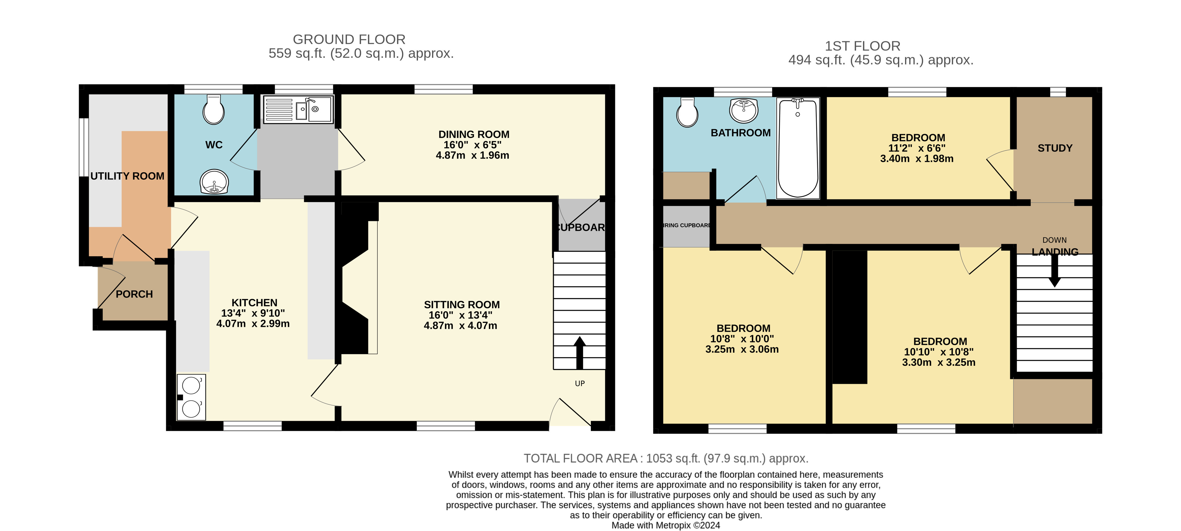 Upstairs are found three double bedrooms (2 of a generous size having storage) a study and a stylishly refitted bathroom.