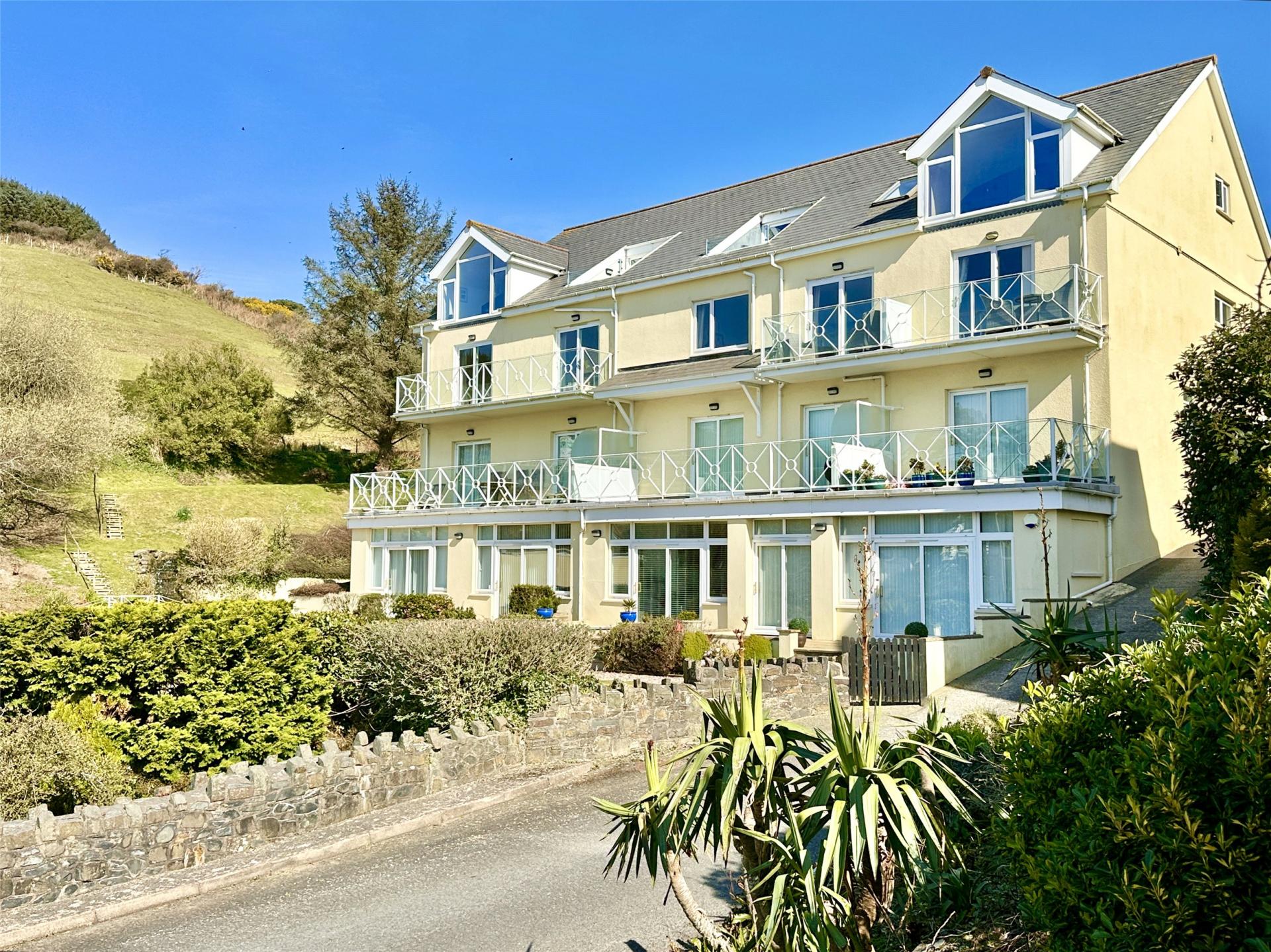 Forming part of an attractive conversion of a former hotel, the building sits within around an acre of landscaped communal grounds that add greatly to the overall setting. The gardens are particularly appealing, with a gently flowing stream, a waterfall feature, arched bridges, and a number of seating areas placed to take in the surrounding countryside and coastal outlook. The setting creates a calm and established environment that feels both private and welcoming.