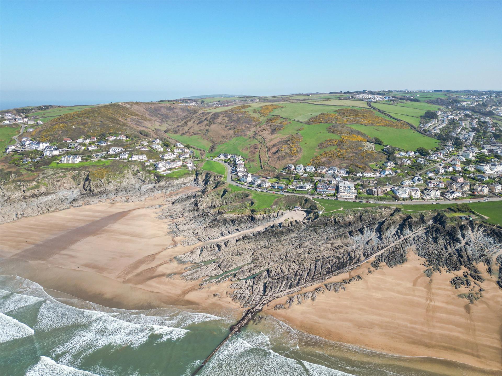 Woolacombe sits on the rugged North Devon Coast and amidst the surrounding National Trust land and is an extremely popular and well known village throughout the UK primarily due to its stunning golden sand Blue Flag award winning beach which has been rated as the No. 1 beach in the country by Trip Advisor for the past two years. Many, many visitors flock to the area throughout the year but especially through the busy summer months. The village has an array of facilities which include a variety of small independent shops, a selection of cafes, bars and restaurants to suit all pockets and tastes, a health centre, chemist and a Primary School which has an 'outstanding' rating from Ofsted. As well as the 2 1/2 miles of golden sand that stretch across towards Putsborough there are Barricane and Combesgate beaches which have rock pools to explore and the former having a beachside kiosk selling delicious Sri Lankan curries through the summer season. The surrounding National Trust Land provides miles and miles of walking enjoying some of the finest coastal scenery on offer. There are a variety of leisure facilities and excellent nearby golf courses with the best known being the two links courses at Saunton, one of which is at championship standard.