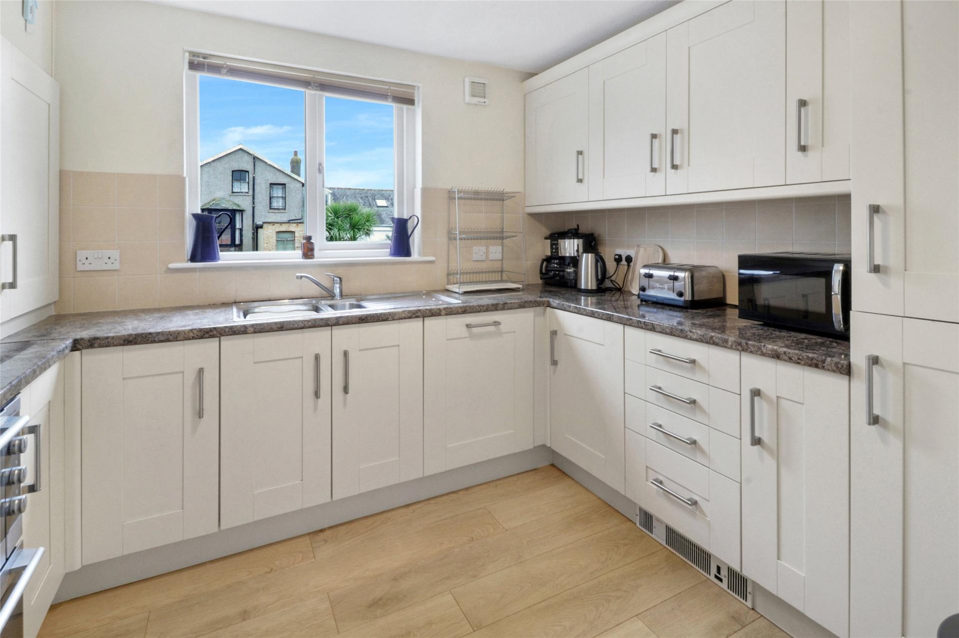 AGENTS NOTE: The property is held on a shared freehold basis, with Flat 4 owning a 1/6th share of the freehold. Current maintenance contributions are £95 per month, which include buildings insurance. We understand from the sellers that this charge also covers a full external redecoration of the building every 7 years, internal communal redecoration every 4 years, and the services of a gardener. Headland Court is managed by its own residents’ management company. There are no restrictions on either longterm letting or shortterm holiday letting; however, pets are not permitted within the building. Built in 1995, the development provides one allocated parking space per flat (six in total), along with two additional visitor spaces. The lease has approximately 968 years remaining.