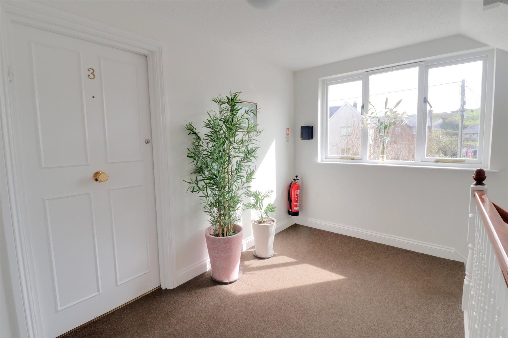 3 Headland Court is a purpose built first floor apartment occupying a central position within the sought after village of Mortehoe. The apartment forms part of a well maintained building of just six homes, creating a setting that feels established, cared for and easy to manage. A communal entrance with entry phone system leads to the first floor, where the apartment opens into a notably spacious lobby with built in storage.