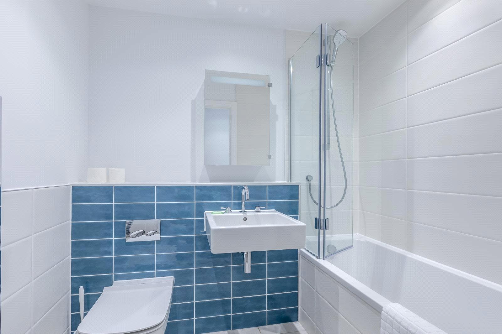 The apartment features two well-appointed bedrooms. The master bedroom includes a south facing ‘Juliet balcony’ with pleasant open views, a built-in wardrobe and a stylish en-suite shower room with sleek, modern finishes. The second bedroom can be arranged as either a double or twin, catering to various needs. A stylish family bathroom, complete with a shower over the bath, adds further convenience.