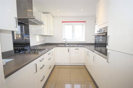 A large arch opens to the comprehensively fitted kitchen with contemporary matching white gloss base and wall units, worktops and sink. The kitchen benefits from all built in appliances including oven, gas hob with extractor over, dishwasher, washing machine and integral tall fridge freezer. A cupboard houses the gas fired central heating boiler.