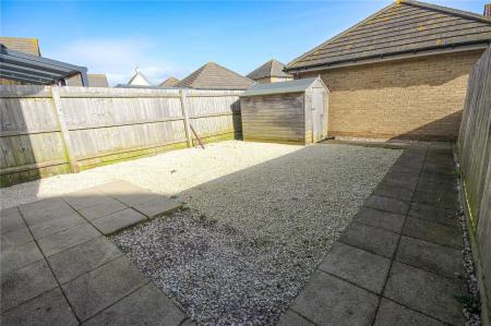 Outside: Steps with handrail lead up from Royal Observer Way to the front of the property where there is a small area of low maintenance garden. A pedestrian wooden gate provides access to one side of the house to the rear enclosed garden which is low maintenance and mainly laid to gravel with wooden fence borders to all sides. There is a water tap, outside power and wooden shed. A second pedestrian gate to the rear of the property leads out to the driveway for number 14 with space for one vehicle next to the single garage which has up and over door, power and light.