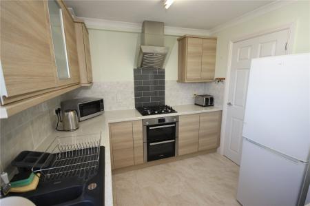 There is a separate fully fitted kitchen with a matching range of base and wall units with a built-in electric oven with gas hob over and extractor above. In addition, there is an inset 1.5 bowl sink and space and plumbing for one under counter appliance and space for a tall fridge freezer.
