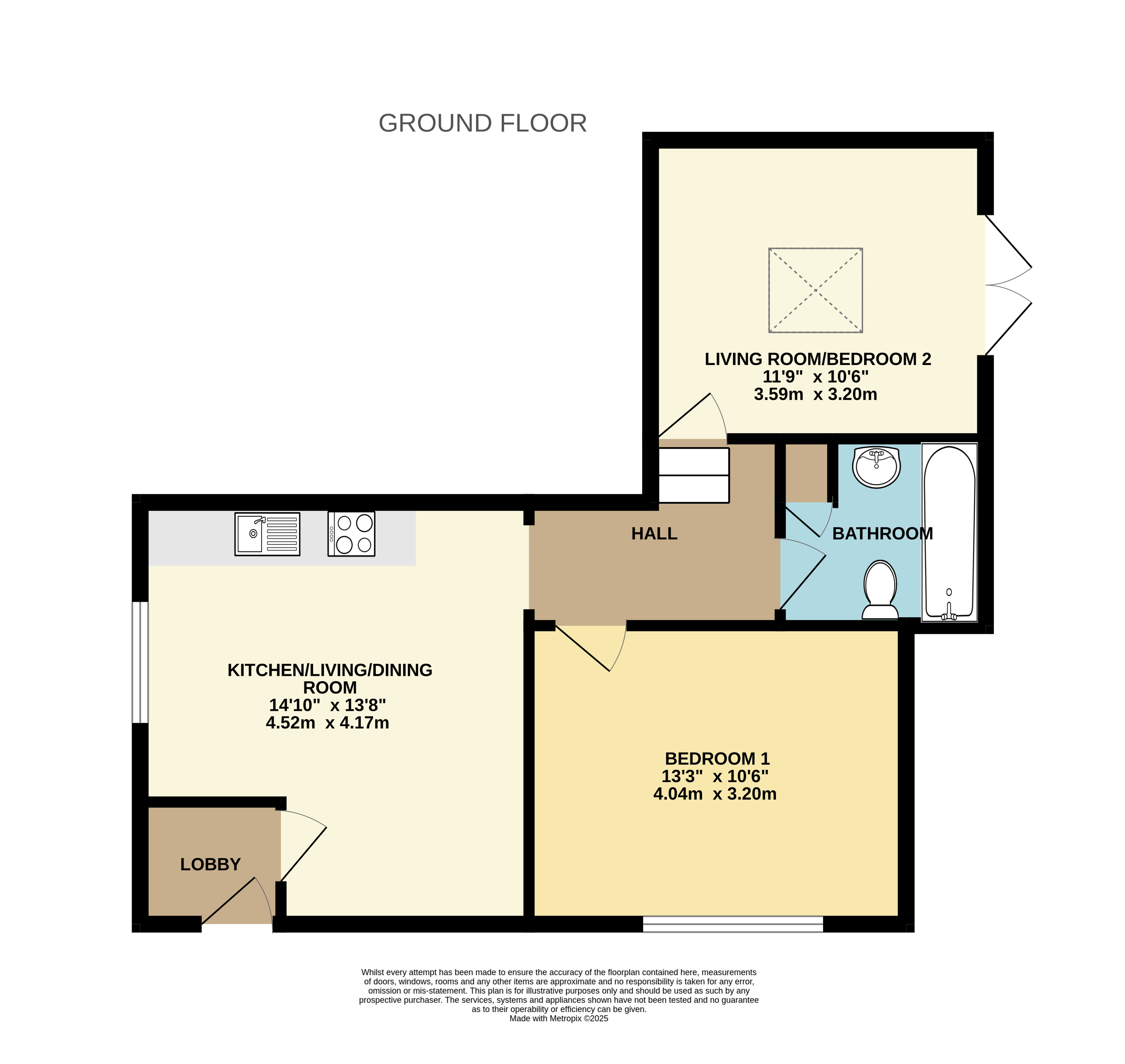The ground floor apartment is currently arranged as a spacious one-bedroom. Its generous proportions provide clear potential to be reconfigured into a two-bedroom layout, instantly increasing both its appeal and value.