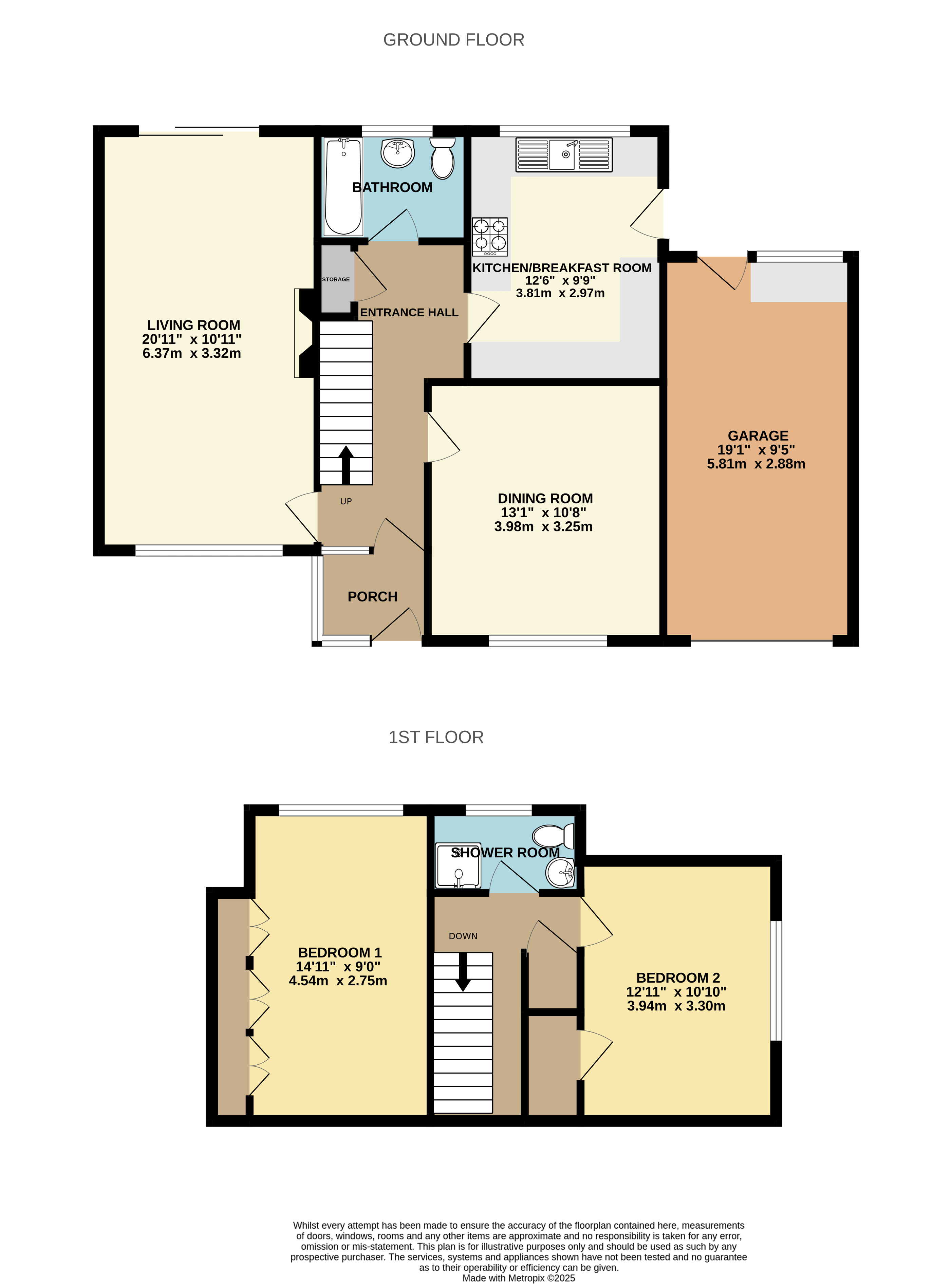 The property benefits from an attached single garage with up and over door and pedestrian door and window to the rear. The garage has power and light and has space/plumbing for a washing machine and tumble dryer. It also houses the gas central heating boiler.